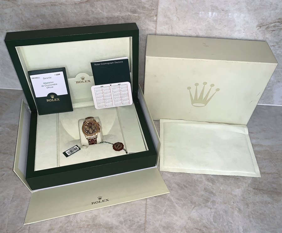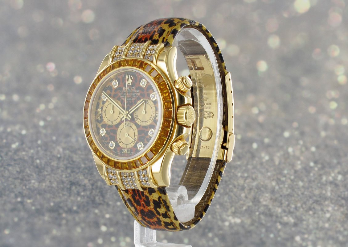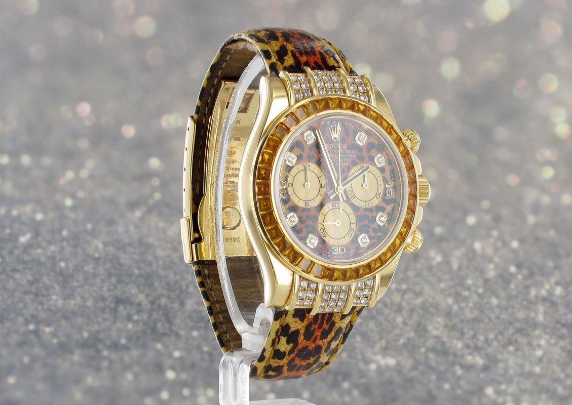 Once perceived as too ostentatious for even Rolex, The Leopard is now perceived as cool, perhaps partly due to being Steve Tyler's daily wearer. This Particular example is in such good condition, that the hologram caseback sticker remains 99% intact.