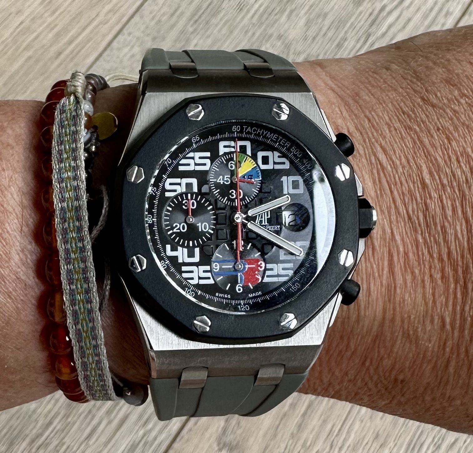 Could this be AP’s ‘Paul Newman’ of the future? No, because the Barrichello 1 wasnt just a pretty face like the aformentioned PN but a great bod too! The Barri 1 was the only Rubber Clad to be hewn from titanium & though limited to 150 pieces, far less were actually produced.