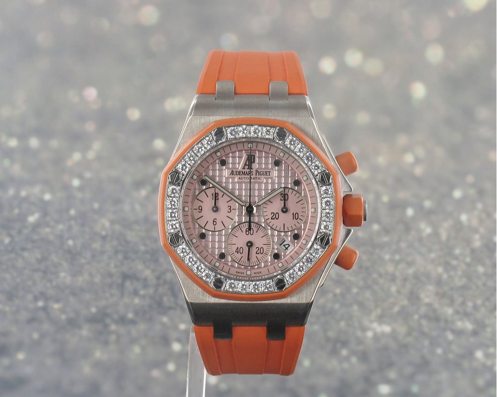 Exceptionally rare factory diamond set ladies offshore chronograph in white gold. If in production today this model would retail for around £50,000.00.