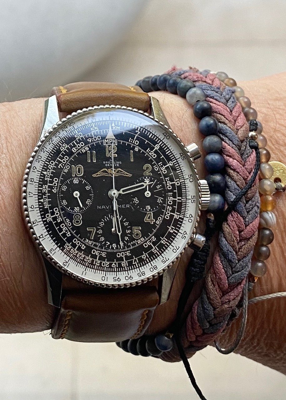 Early Navitimer with all black sub dials, rice bead bezel and Venus 178 movement.