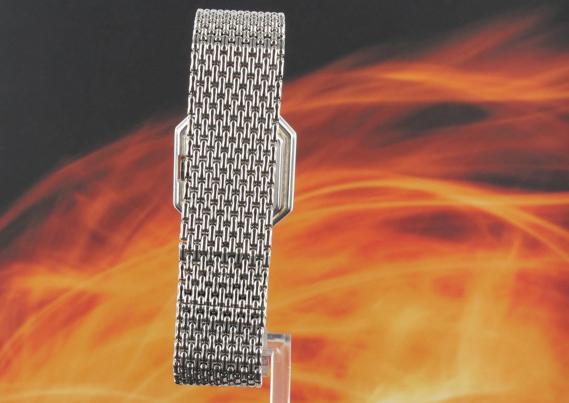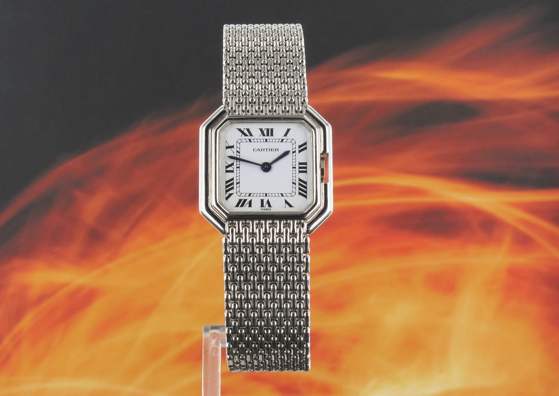Exceptionally rare example of the largest size mechanical manually wound Ceniture cased in white good with the added bonus of being specially requested on a white gold integral 'rice grain' bracelet with relevant French hallmarks.