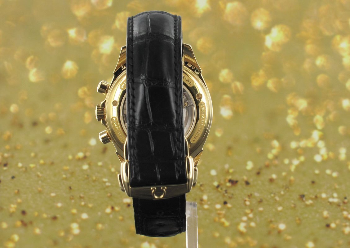 Exceptionally rare yellow gold incarnation of the superior Co Axial chronograph movement from Omega.