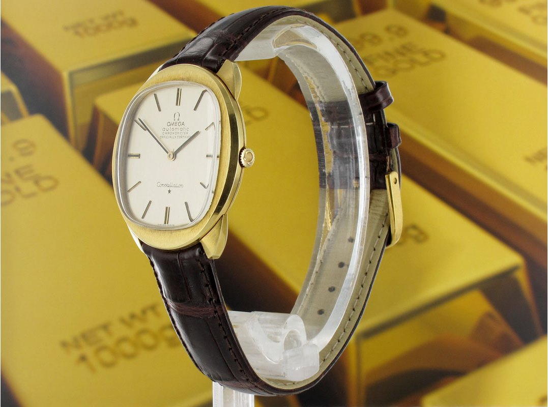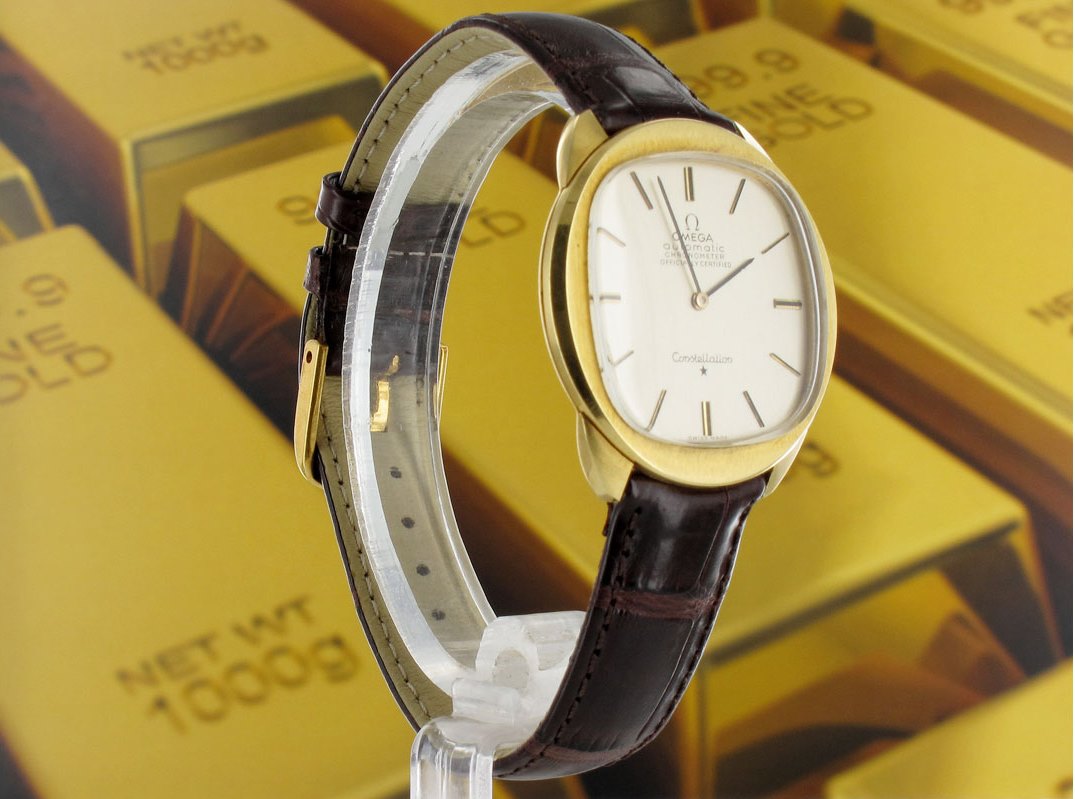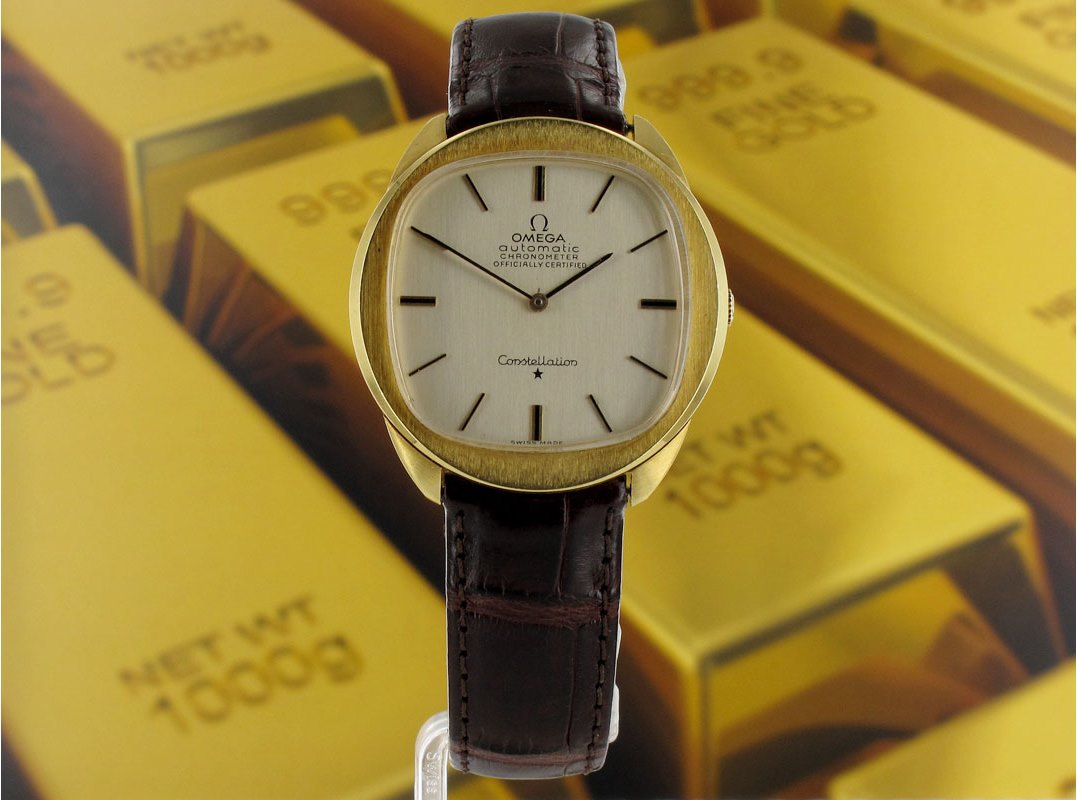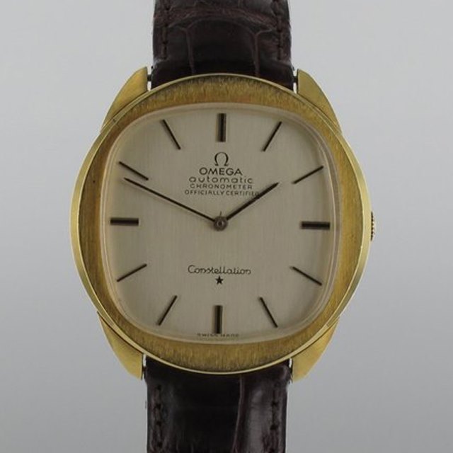 50 Year old Omega Constellation in absolutely superb mint unpolished condition complete with original papers. This configuration is known as The Little Devil to to its horn shaped lugs.