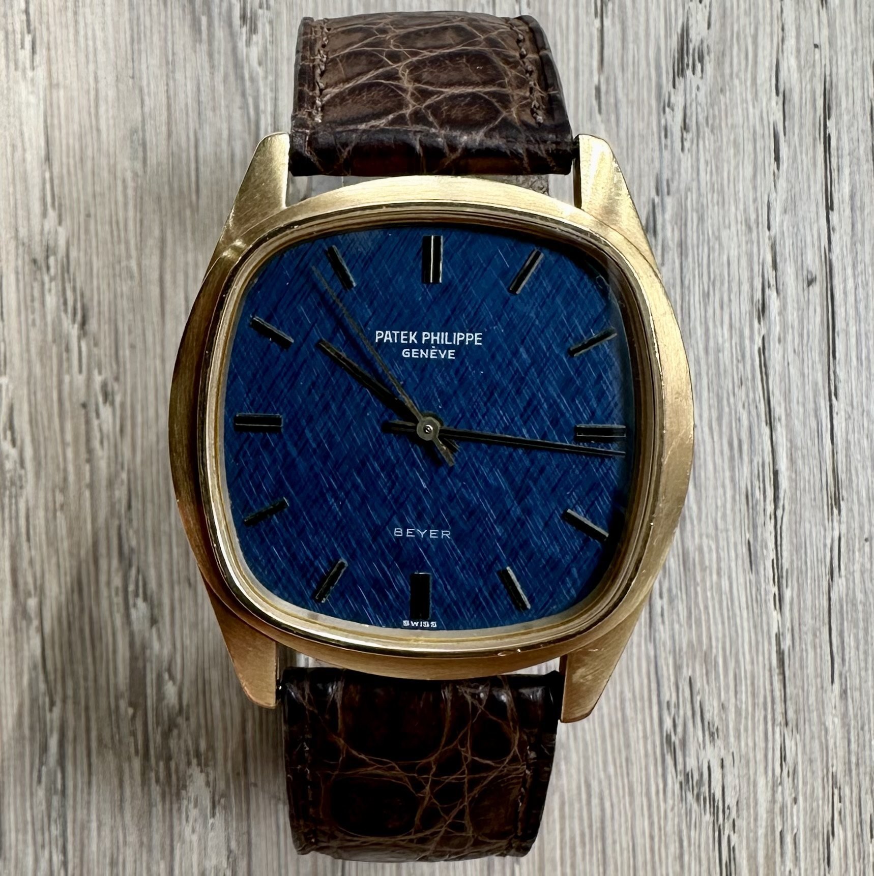 A beautiful blue crosshatch dial, double signed via perhaps the most famous Patek Philippe retailer in the world, Beyer.