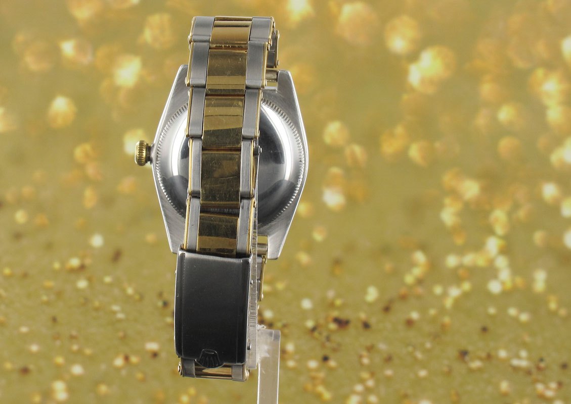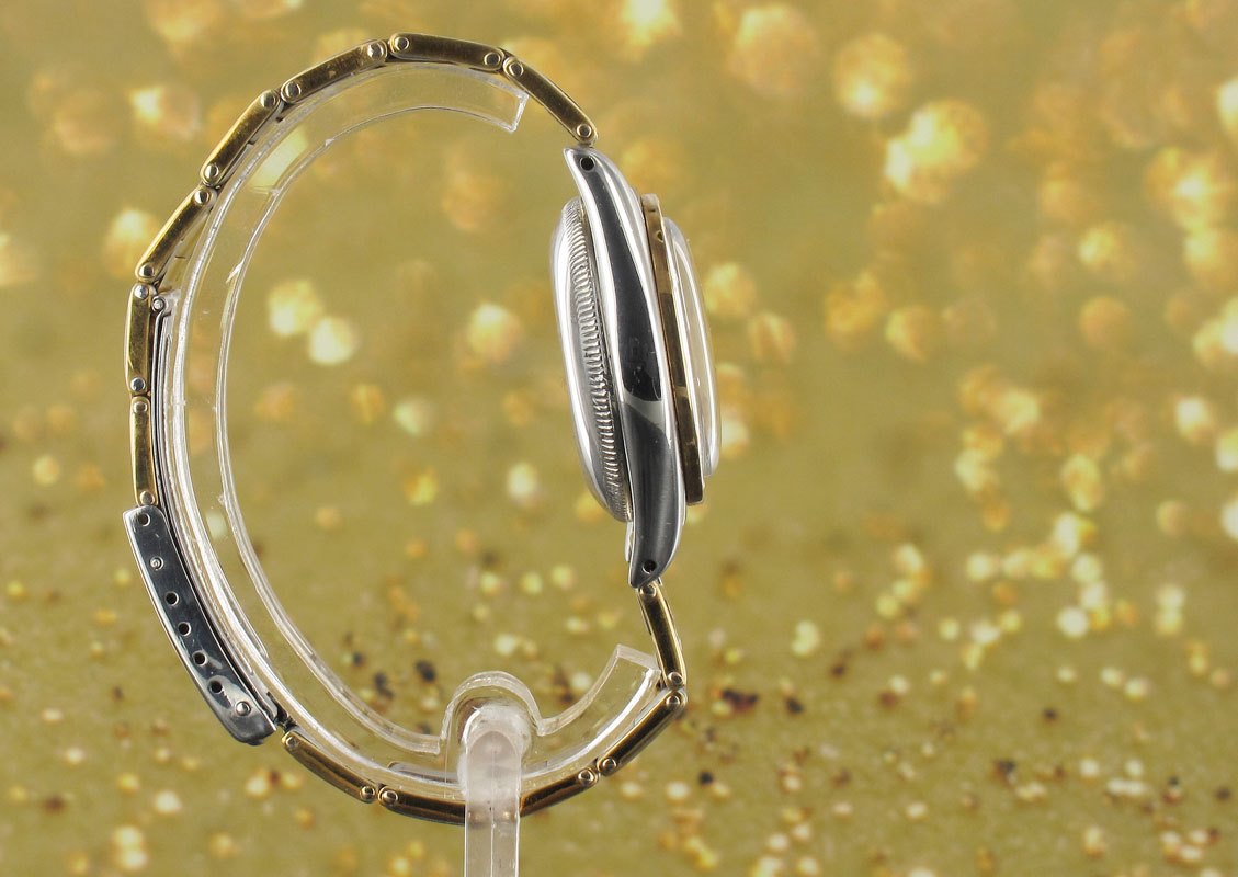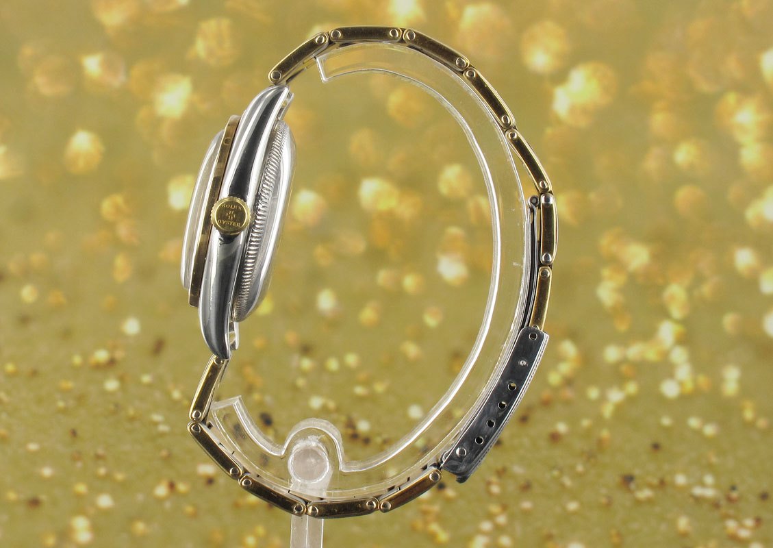 Bi metal Bubblebacks have always been rare, but with original dial and a virtually new old stock condition stretch riveted steel and gold original bracelet makes this example a must for any collector. In the last twelve months we have seen prices rising for bubblebacks as they have been so ridiculously undervalued since the eighties but like everything they are again coming back into their own.