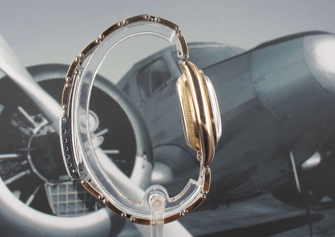 Stunning original 1942 bubble back boasting a multiple of Rolex collectables... 1.) Rare Thunderbird bezel 2.) Original Mercedes hands 3.) Stunning original dial with luminous intact 4.) Rose and steel stretch riveted bracelet