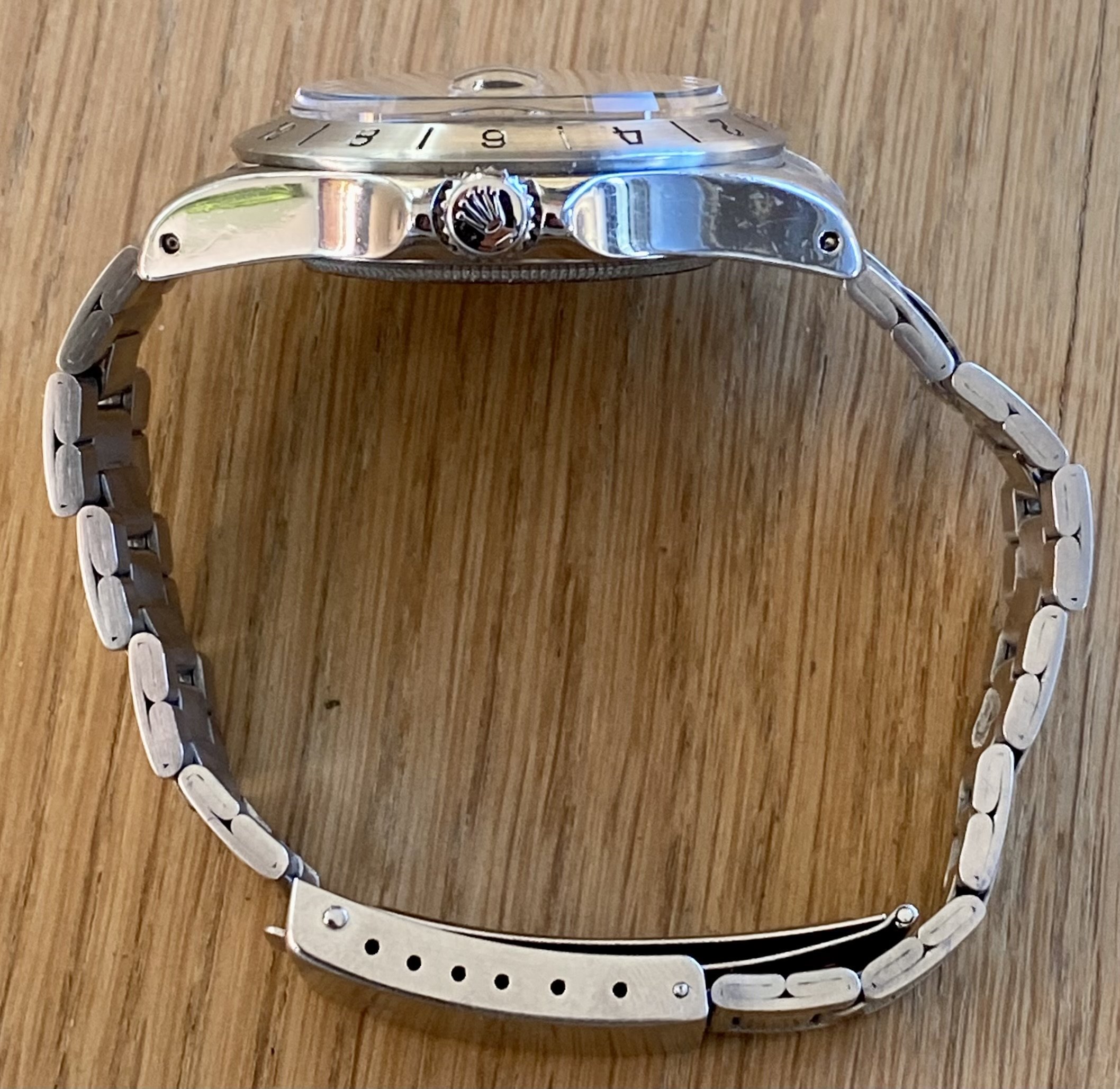 There can be little doubt the 'Orange Hand' was as close as Rolex ever got to the funkyness of the Omegas from the same period. It's a conundrum to me that with the re-introduction of the orange hand some years ago now that the originals have not shot up in value. To be able to buy first series examples such as this with a slightly different bezel and dial configuration to that of all subsequent models, with of course the non-lollipop straight second hand for sub 30's, makes no sense to me whatsoever.