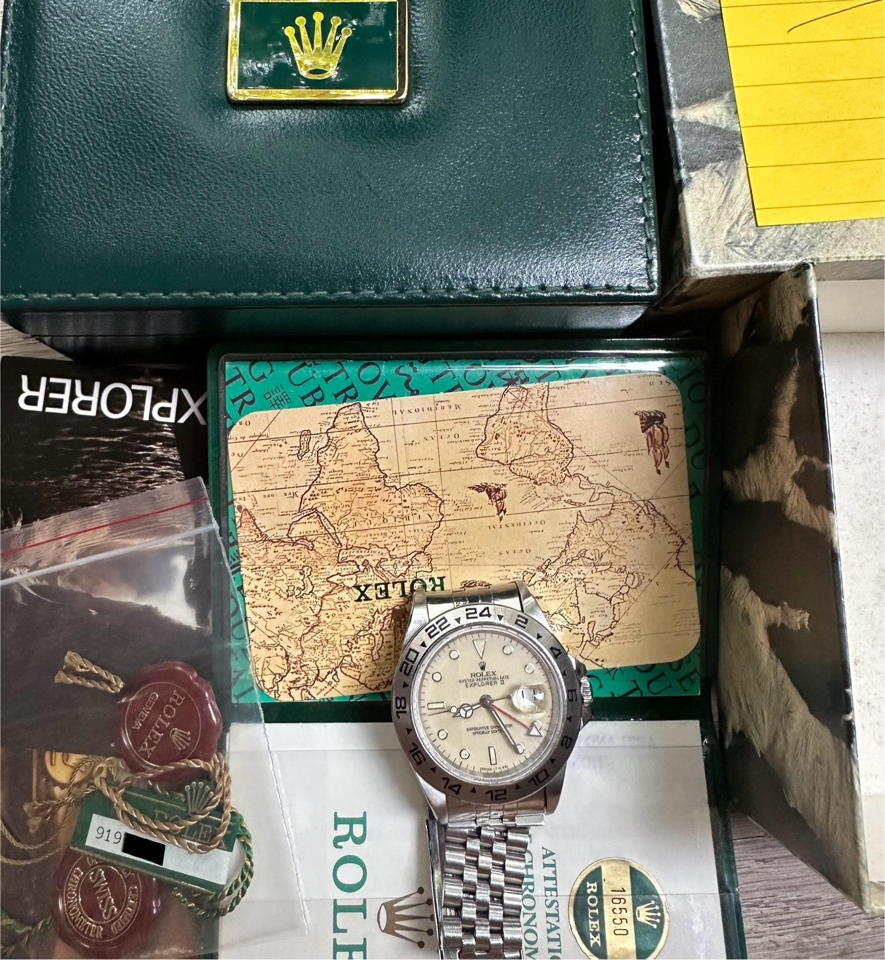In outstanding condition still retaining it original box, papers, booklets and even its numbered swing tags, this really is one for the consummate Rolex sports watch Collector.