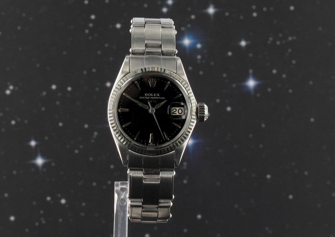 Stunning example of the ladies oyster date model with highly desirable riveted Oyster bracelet & truly stunning lacquered black dial complete with dagger hands of the period.