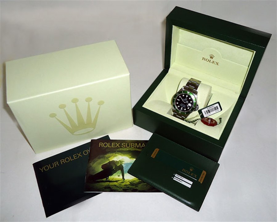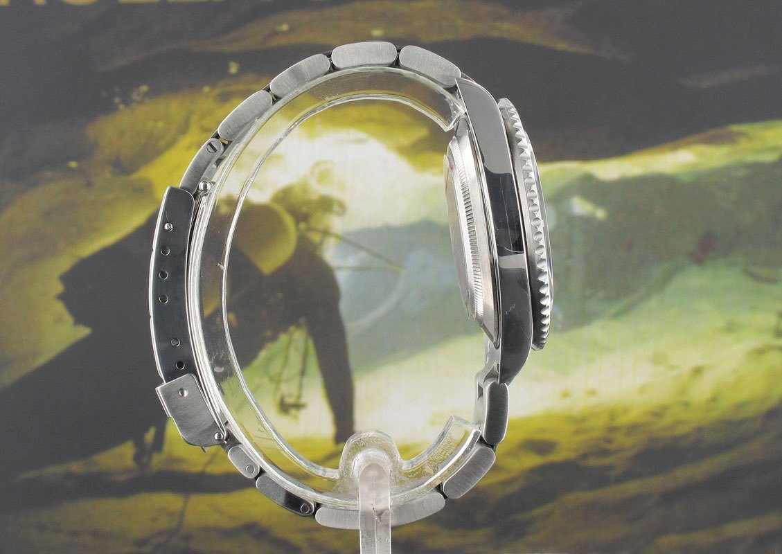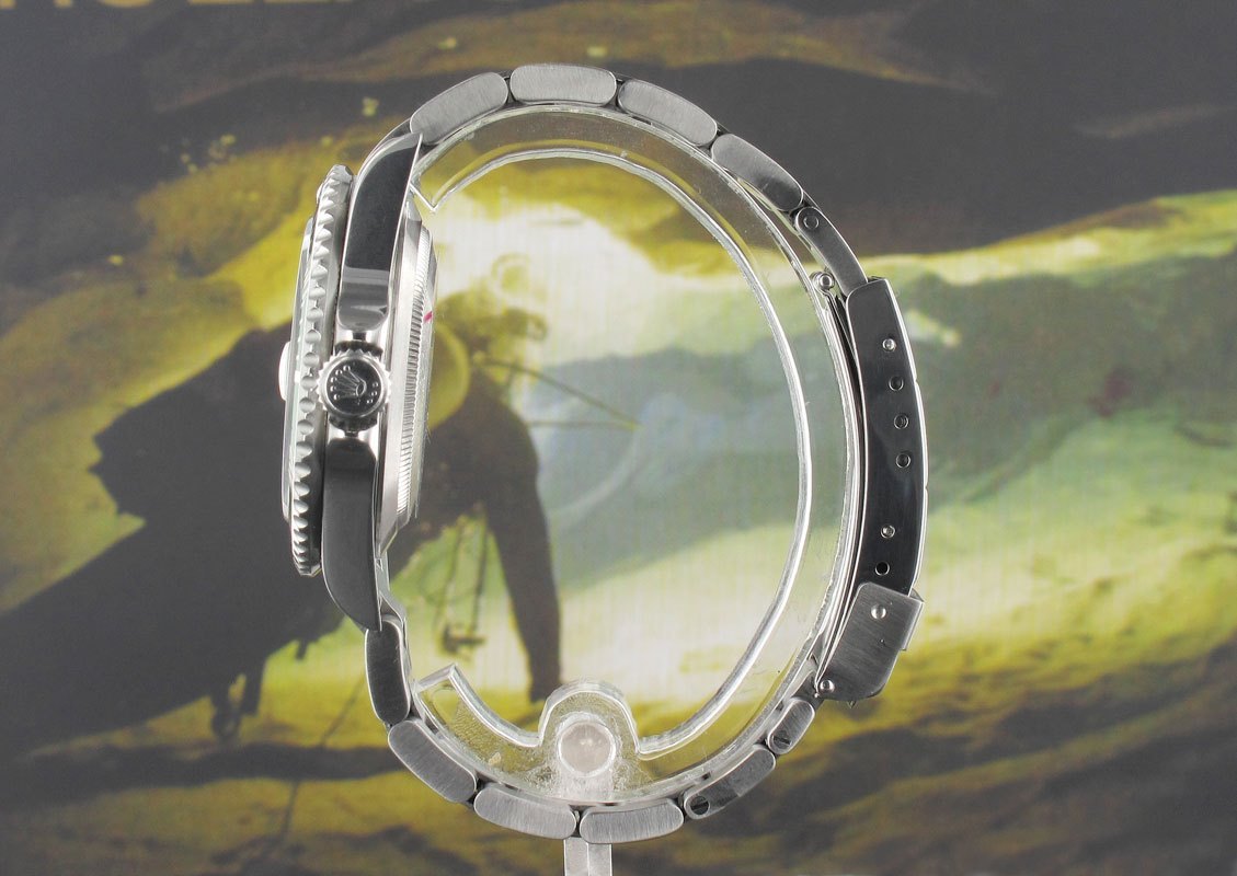 Produced for only 6 years the 50th Anniversary sub differs from the standard 11610LV with "Maxi" dial, laser etched glass and obviously the green bezel insert. It was originally believed that only the first production examples came with what is now commonly know as the "flat 4" bezel insert but as typical with Rolex when nearing the end of production they had to use up whatever back stock they had lying around and this is why this later 2008 example came with the flat 4 bezel insert. Often regarded as the very last true "old school" Submariner rare examples such as this have gone up considerably in the last year or so as collectors are snapping them up.