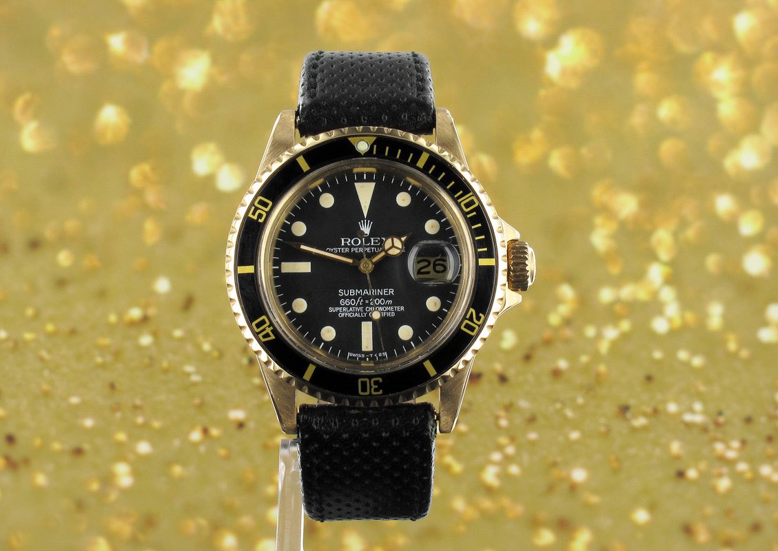 Unusual 18 carat gold sub with matt dial normally associated with the steel 1680 model in incredible condition on leather strap.