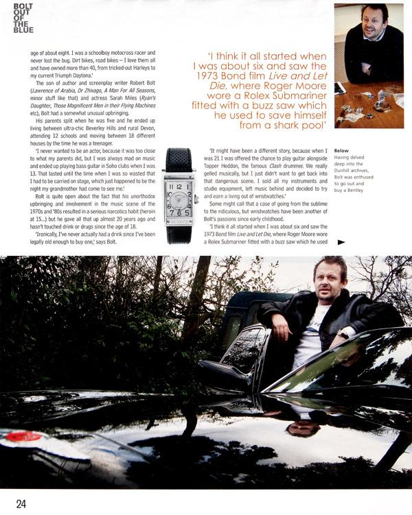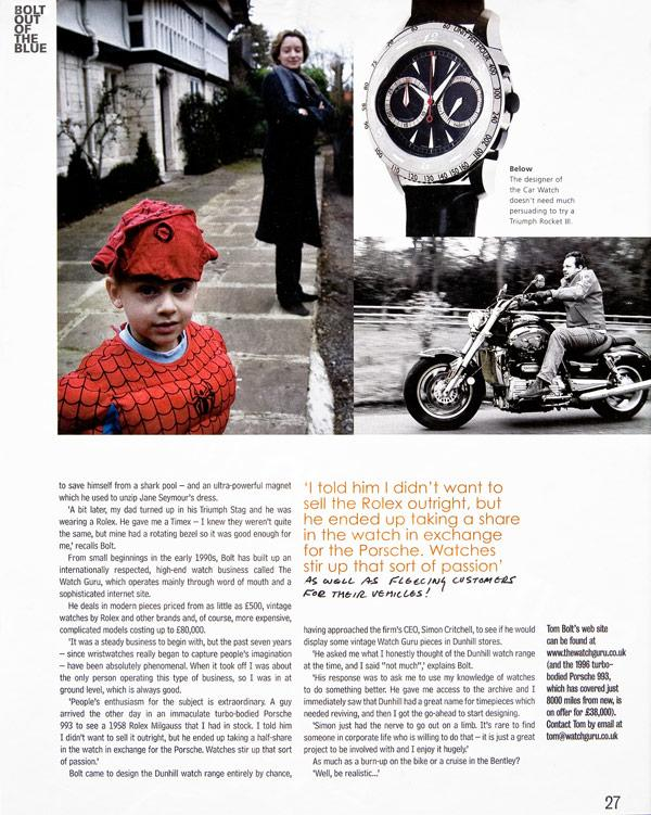 A consultant for Christie’s and Sotheby’s, Mr Bolt contributes to magazines such as International Wristwatch and works with the vintage department of The Watch Gallery in London. He even has a website (www.watchguru.co.uk). His choice for the ultimate girl’s watch is a vintage Cartier: ‘It’s a beautiful piece of jewellery, rather than having the most sophisticated movement.’ For quality and value for money, he recommends Omega watches, both past and present.