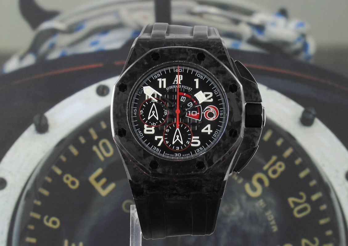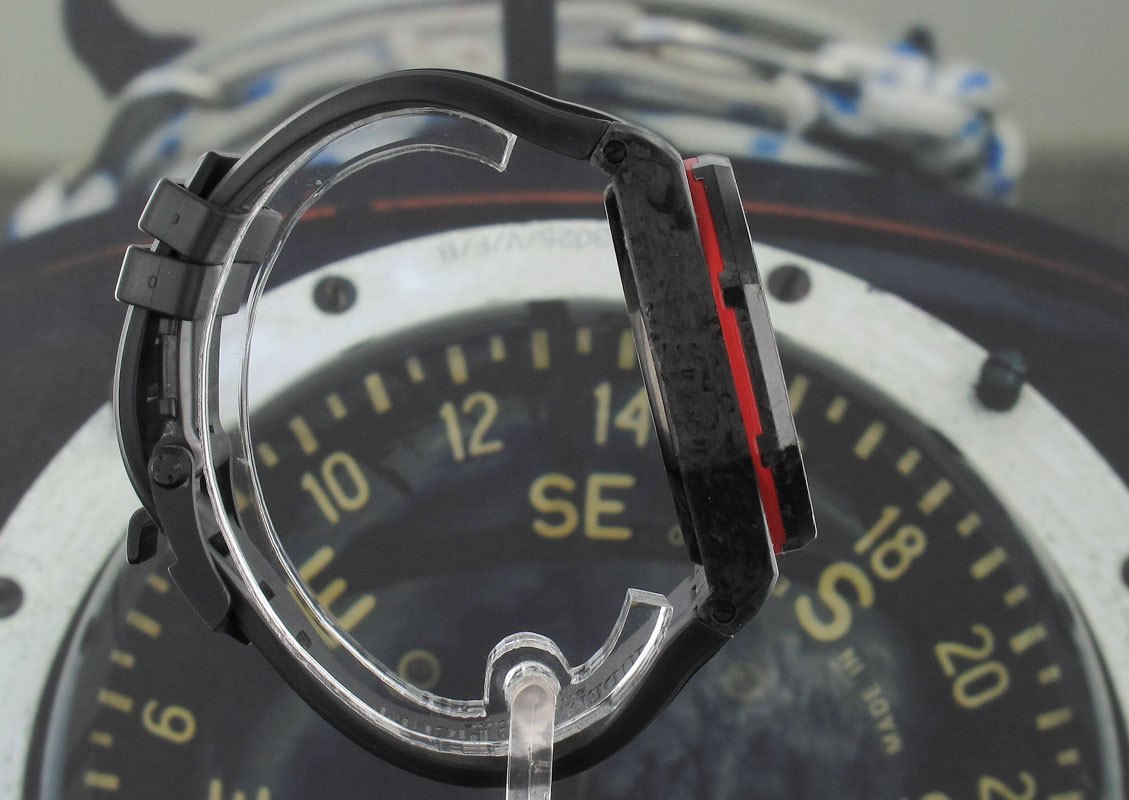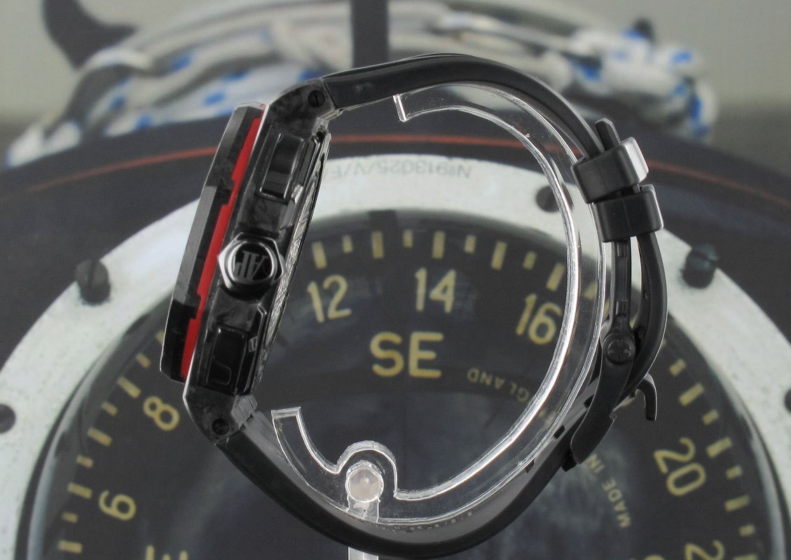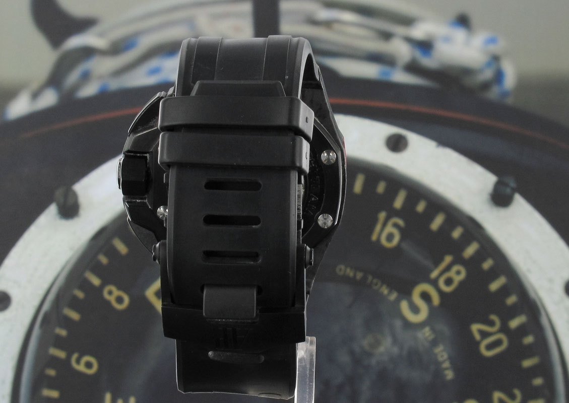 One of the actual Alinghi chronograph watches worn by a crew member of Team Alinghi in 2007 during the 32nd Americas Cup race. Unlike the 1300 limited production pieces this example has the roman numerals of the crew member rather than production numbers on the case back.