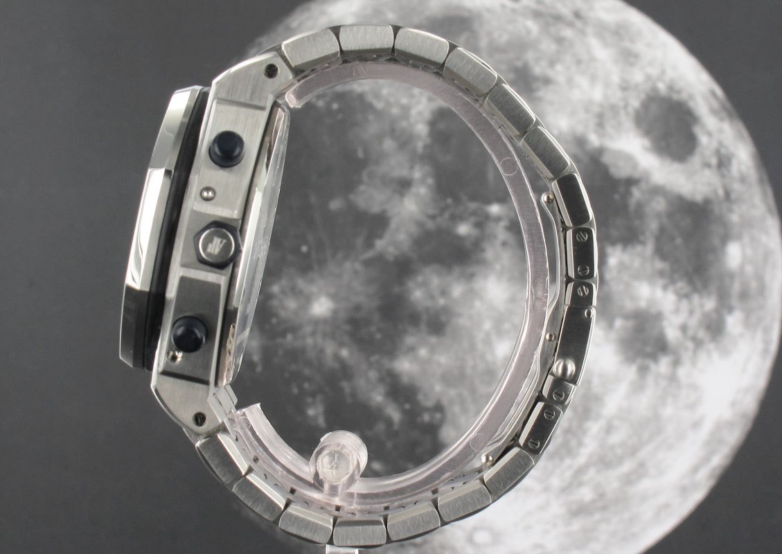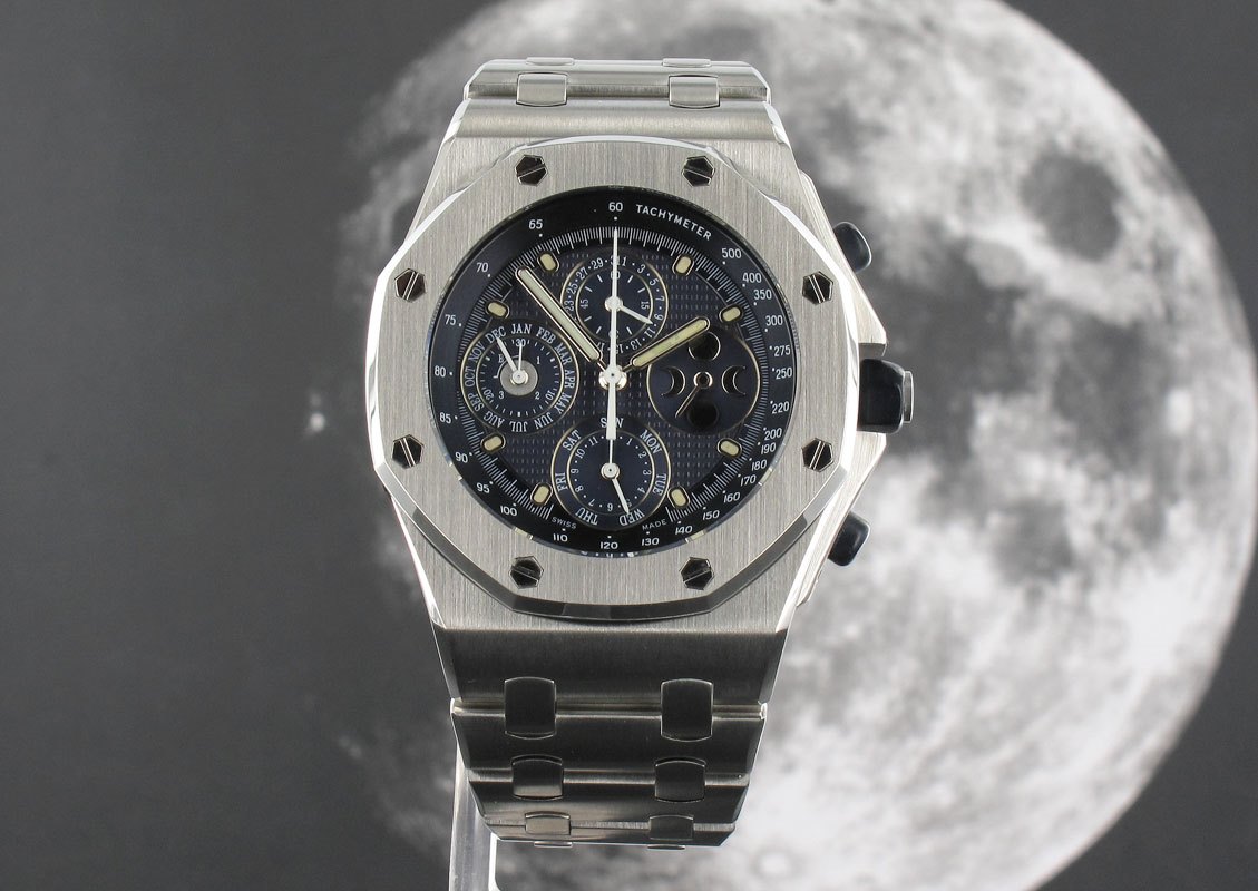 Proper old school original Off-Shore presented as a limited edition of 15 pieces due to incorporating a perpetual calendar and moon phase as well as a chronograph.