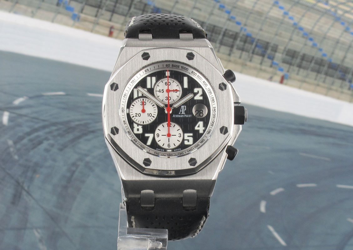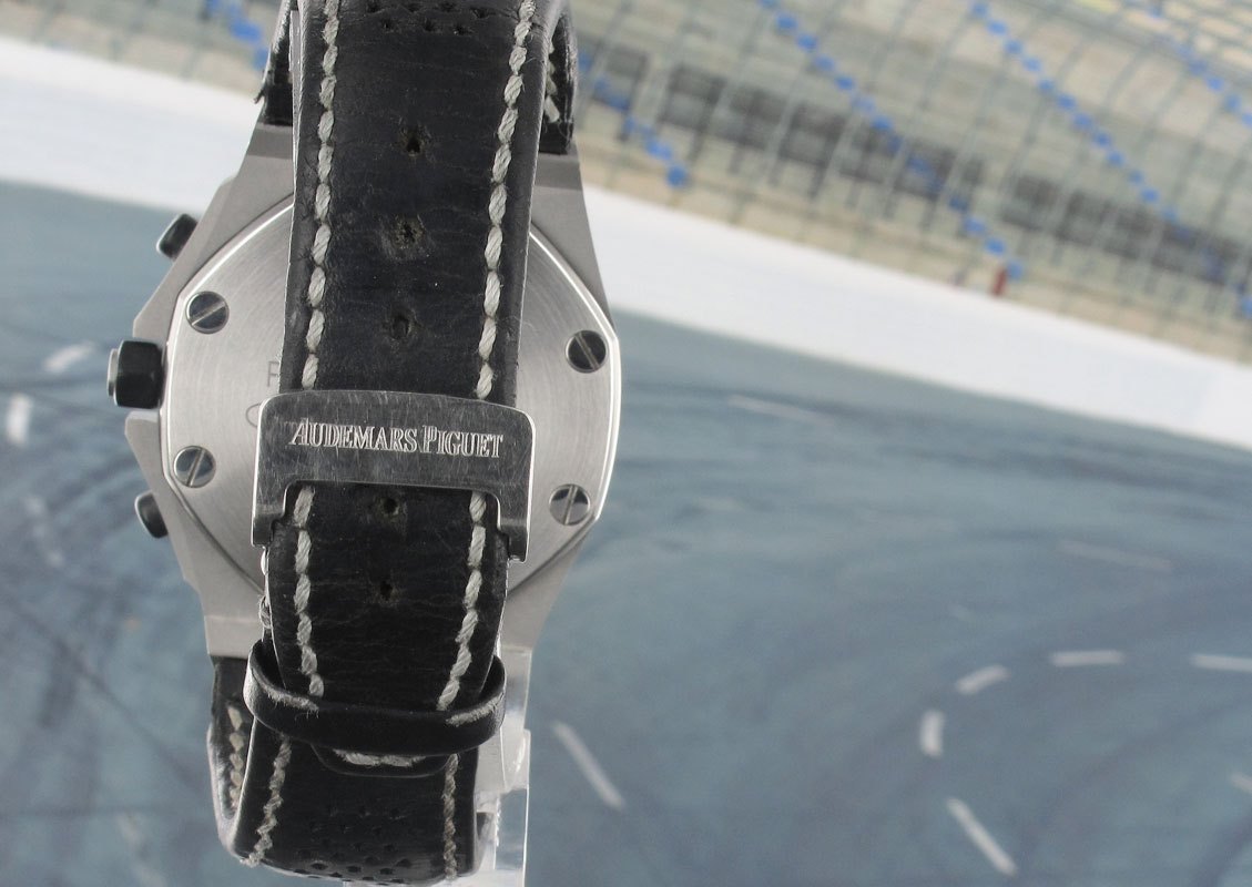 One of the coolest looking offshore models and a true limited edition. Created to mark the third year of AP’s partnership as “Official Timekeeper” of the Tour Auto Lissac. Produced as a limited edition watch with only 100 pieces being released and long ago sold out. Audemars chose to use a self-winding 3126/3840 calibre movement with 59 rubies, 365 parts, 21,600 vph, and a power reserve of 60 hours. The movement also features a tree stop winding mechanism stem, hand decorated finishing, and a variable inertia balance with eight inertia blocks.