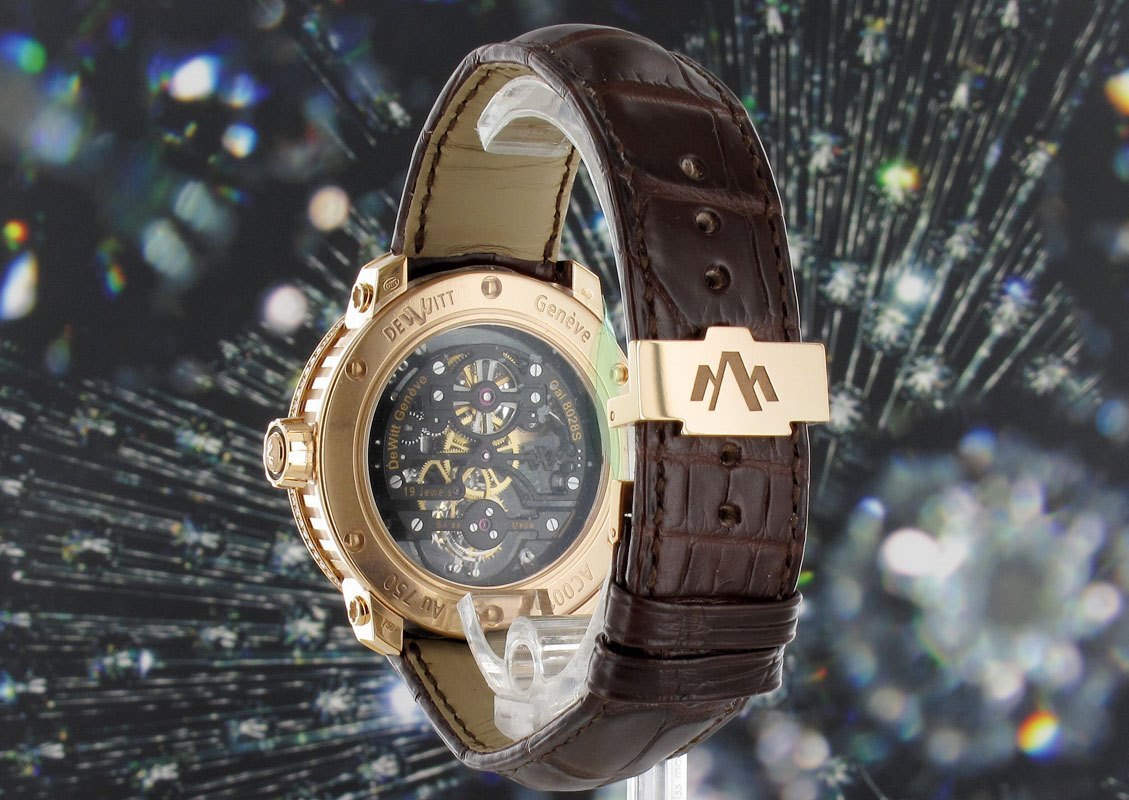 Every Dewitt tourbillon is hand made and assembled by only one watchmaker. It's unique case design incorporates 48 imperial columns, an art deco bridge and a skeleton barrel positioned at 12 o'clock with its design taking inspiration from a vintage car steering wheel. At less than a quarter of its retail, this factory set piece incorporates 36 baguette diamonds and 104 round ones totaling 3.7CT's. Produced as a limited edition of only 99 pieces this represents phenomenal value if you like the look.