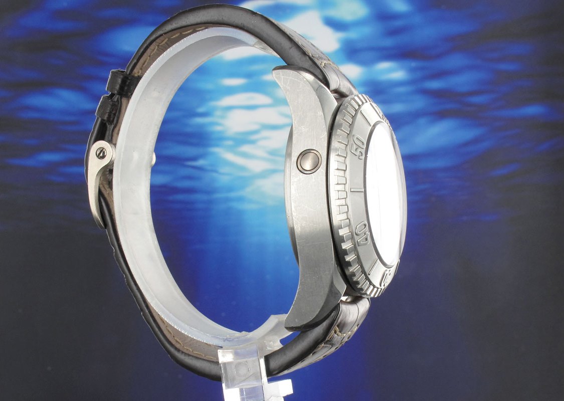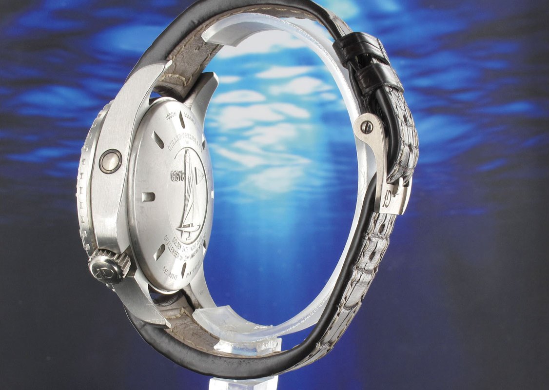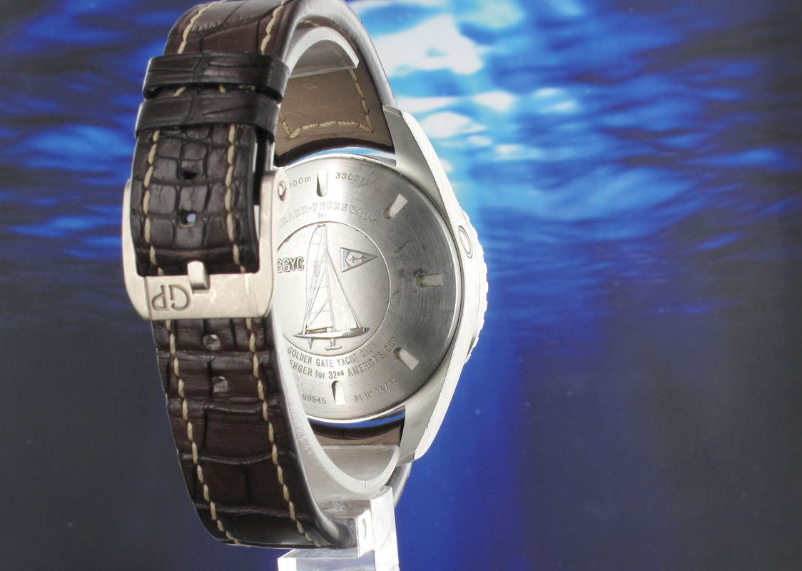 Originally retailing for an incredible £250,000 this 32 piece limited edition platinum tourbillon form the GP Sea Hawk collection incorporates two gas escape valves allowing it to be water resistant to 1000 meters. Produced in 2009 to commemorate the BMW Oracle racing golden gate yacht club team the case back depicts an engraving of a Class America USA 87 as well as the flag of the Golden Gate Yacht Club and BMW Oracle racing team.