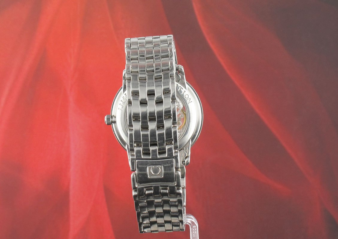 Released at the Basel fair in 1995 as a limited edition of only ten pieces with this example being the only one known to come on an original platinum bracelet which at the time would have been around 40% more than than its strap equivalent. Note the ultra thin manual platinum movement which is visible through the front and the case back and see this really is a thing of beauty.