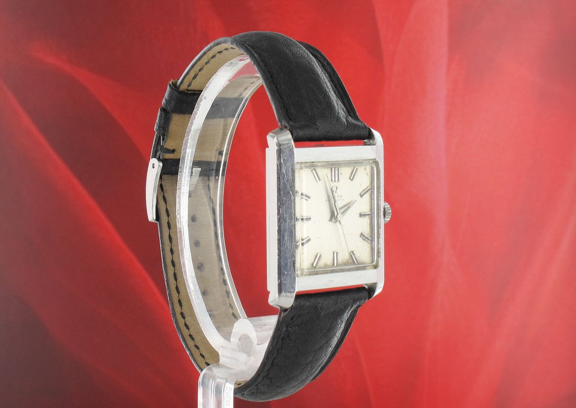 Rare original early square Omega incorporating an automatic movement supplied with genuine Omega strap and buckle.