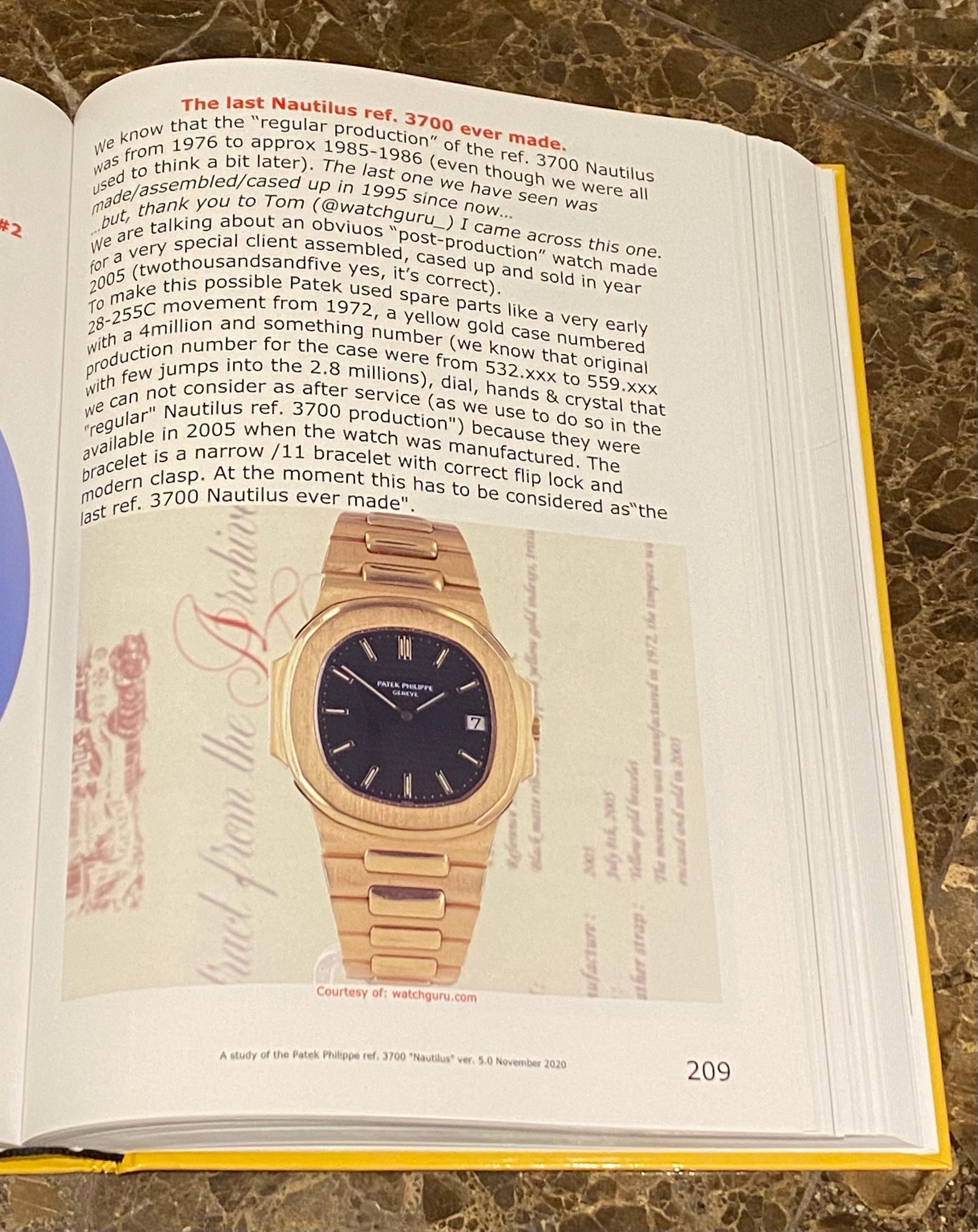 The last Jumbo Nautilus ever made. Made for a particularly special individual in 2005, nearly 15 years after the ref 3700 ceased production. It incorporates the more modern clasp & dial while retaining the original old school movement & case, albeit with modern internal numbers due to the watch having been created in 2005. The ultimate 3700 for bragging rights?.......! It also features in the ultimate book on Nautiuls's by Mstanga as 'The Last Nautilus Made'. See attached pics