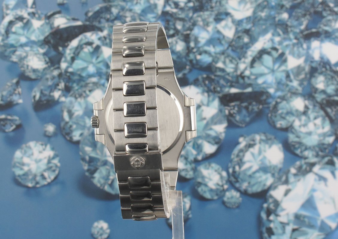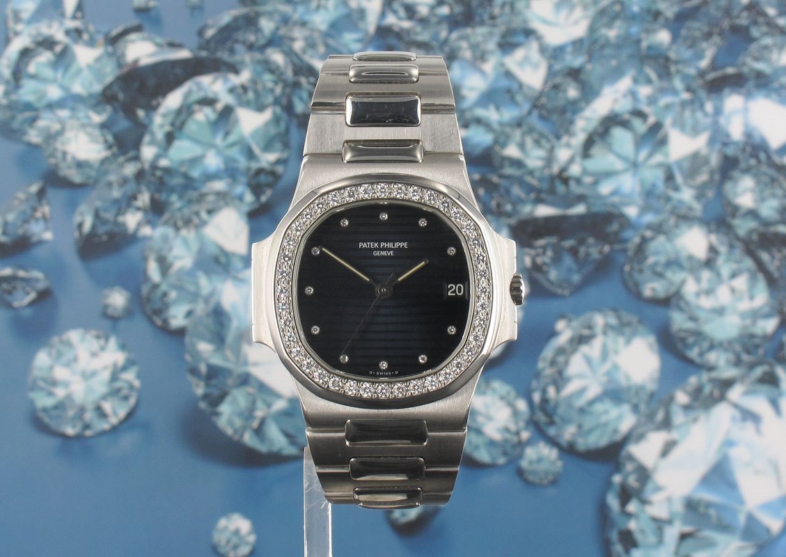 Exceptionally rare platinum cased Nautilus with factory set diamond bezel and dial markers.