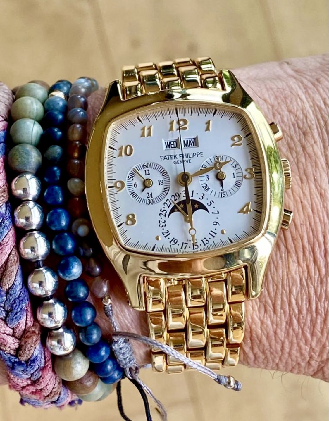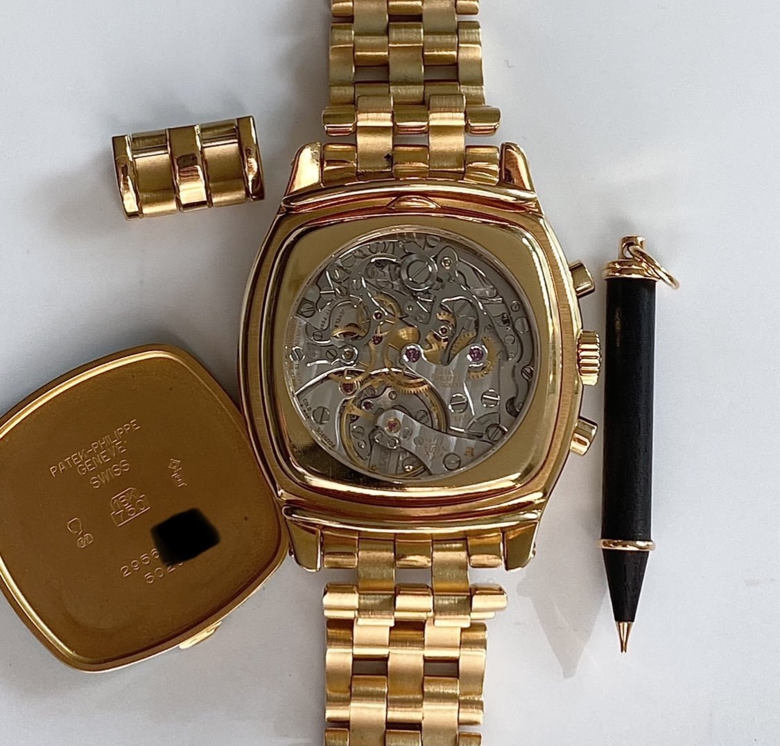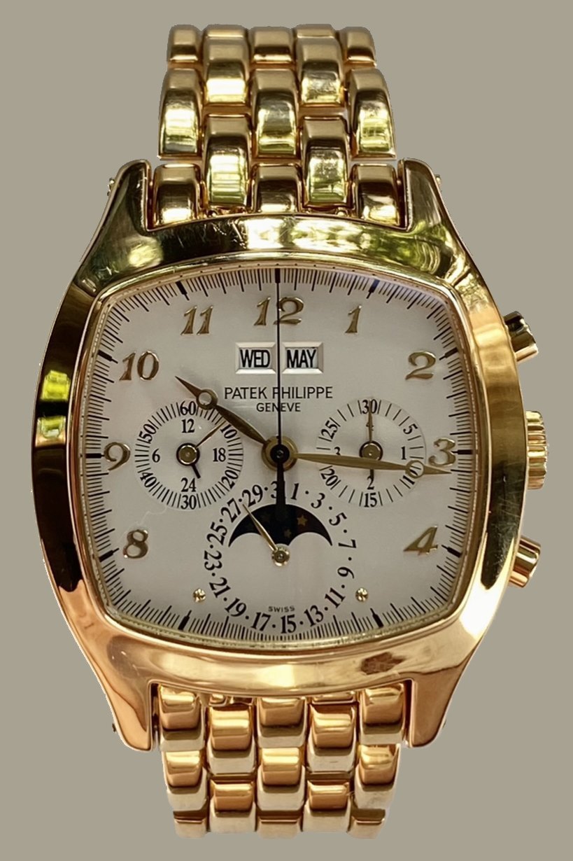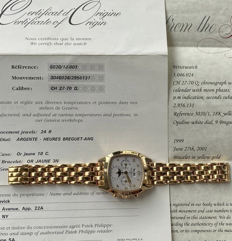 When the 5020 was launched in the 1990s as an alternative to the more classical 3970 it went down like a led balloon. As a result they made less than 200 examples in all metals hence now due to their rarity they're going up like a hot air balloon! While the cases were different & funky enough to have been a success I believe the reason for their relative failure to be the rather unfashionable Breguet numbers. Approximately 40% of total production were yellow gold, the other 60% being divided into rose, white & platinum. 90% of total production ran the Breguet dials & hands while the rest ran diamond index dials which turned the watches into a much more desirable beast. Suddenly the old antique dresser was transformed into an Eams chair! Rarer still are versions that ran bracelets. Only 4 pieces (of the original edition) are known, of which this is the only yellow variety. For me, the bracelet again turns it into a whole different animal userping the varieties with diamond indexes on leather straps even. The all important factor is that both it's original paperwork & archive certificate confirm its birth on a bracelet.