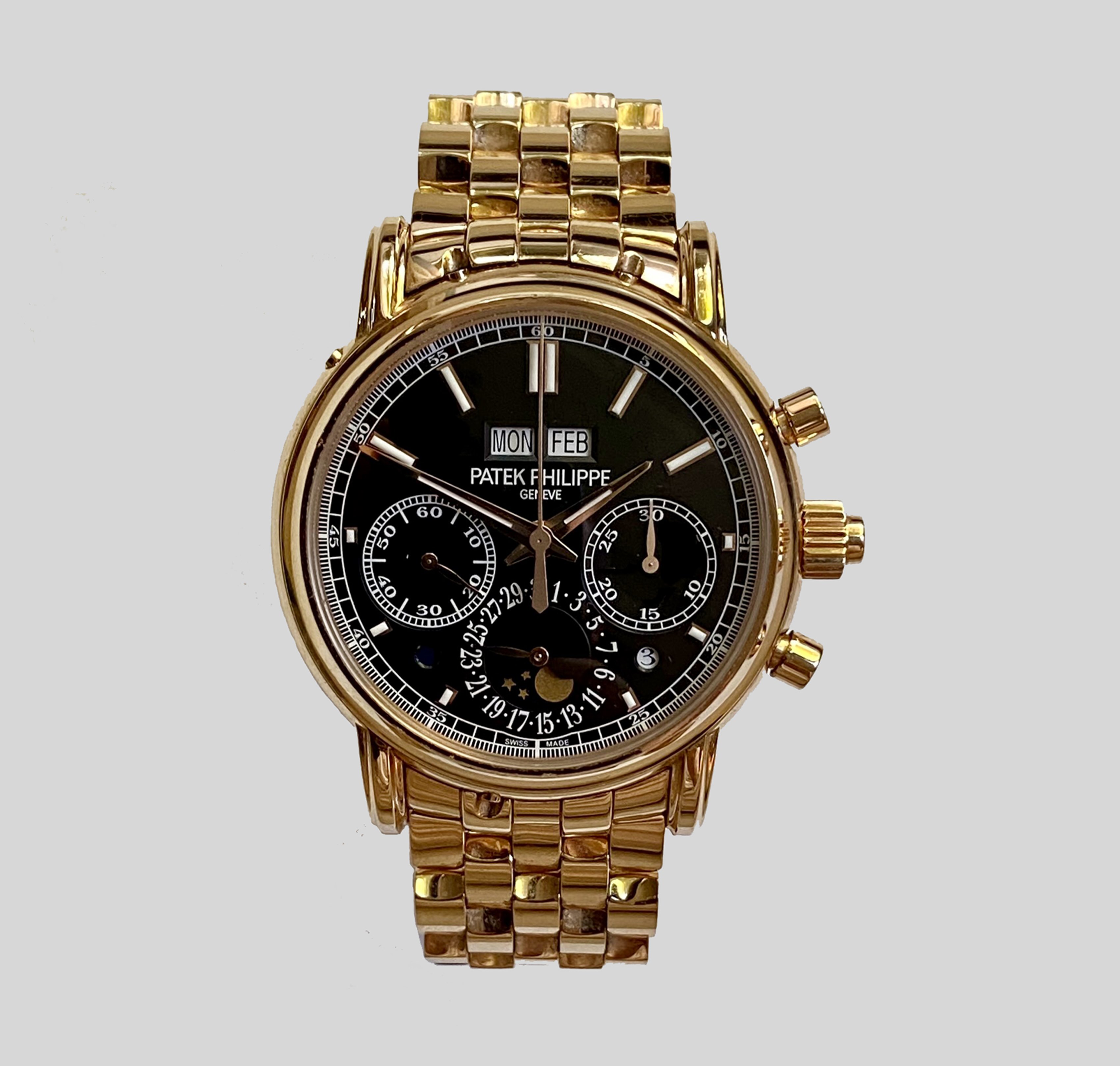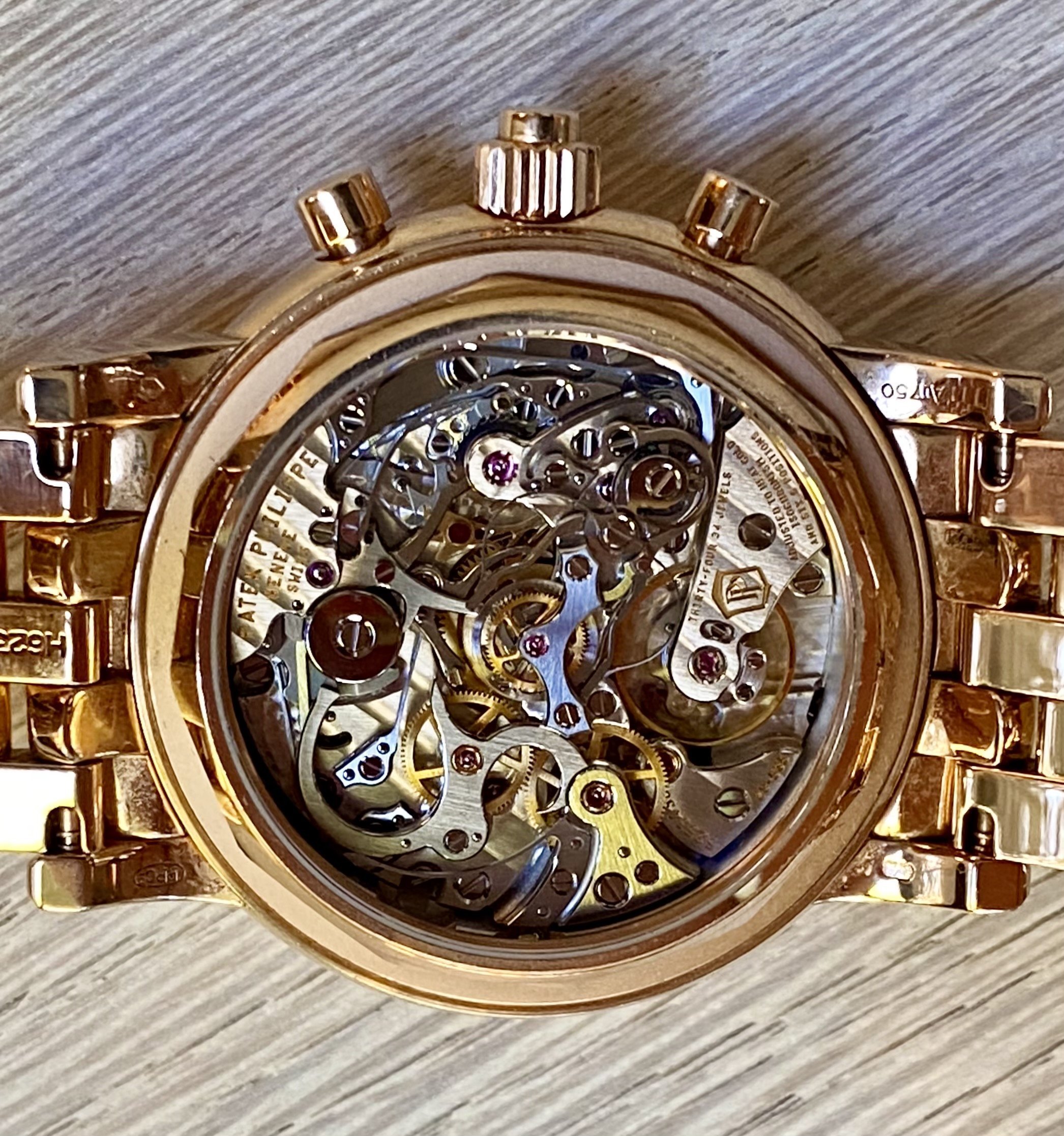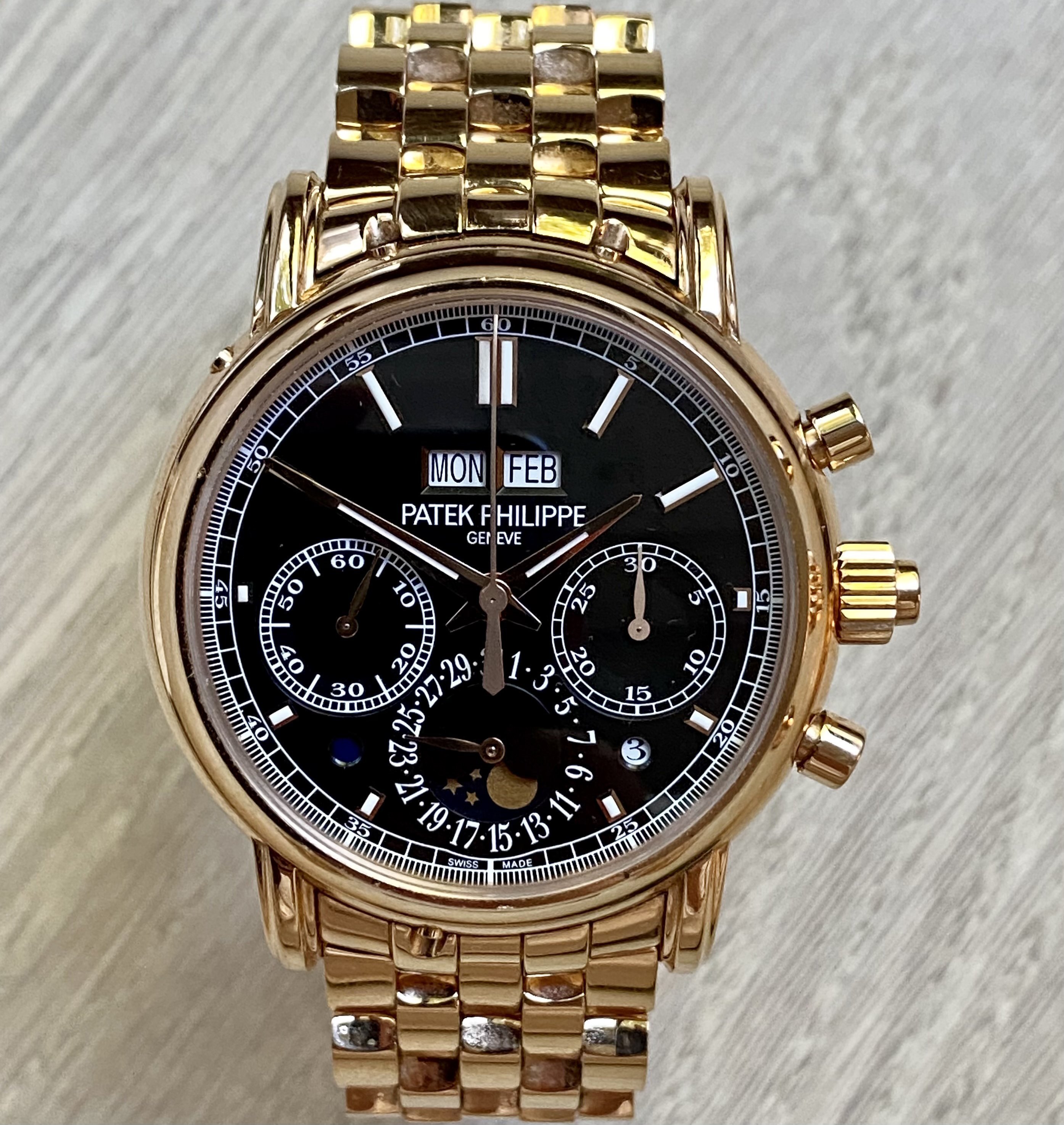 The 5204 is the first in-house split second perpetual chronograph of which this, by far, is the coolest iteration with jet black dial & rose gold bracelet.