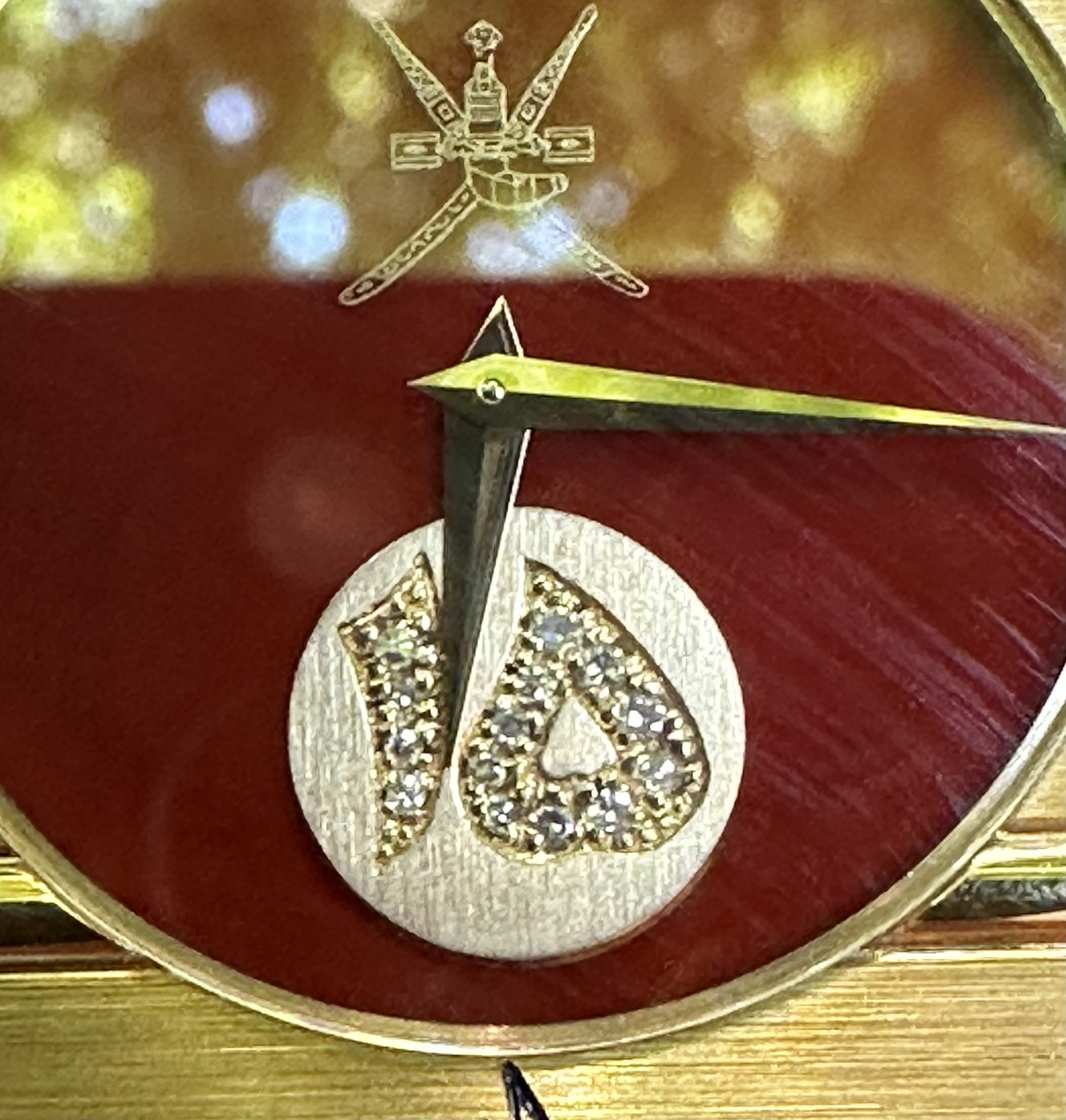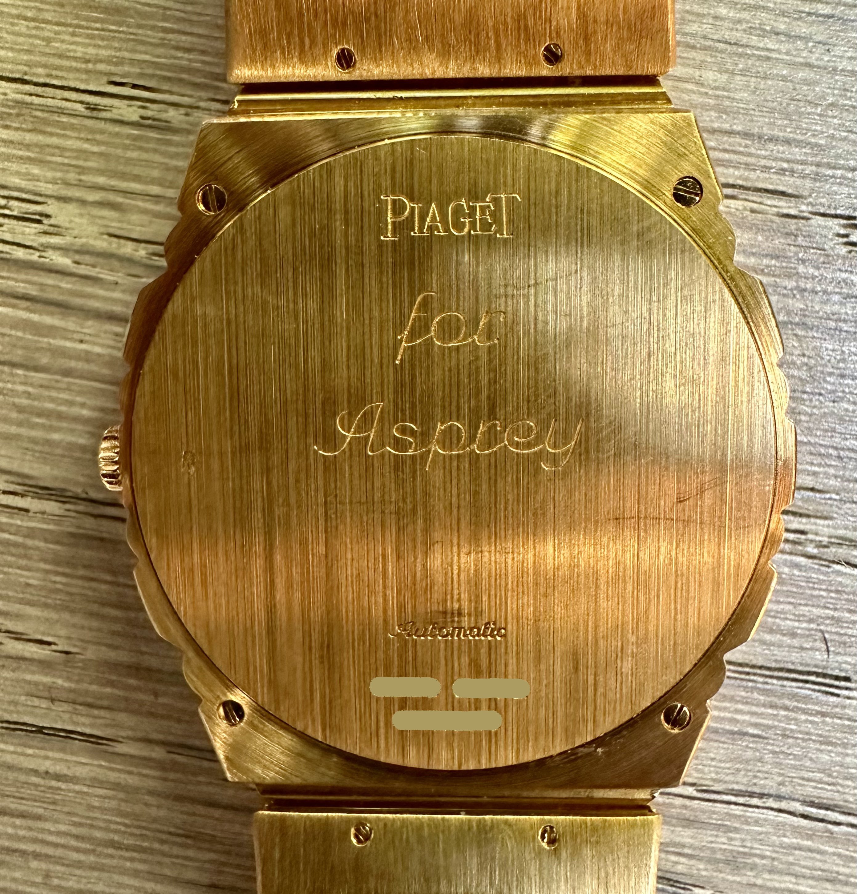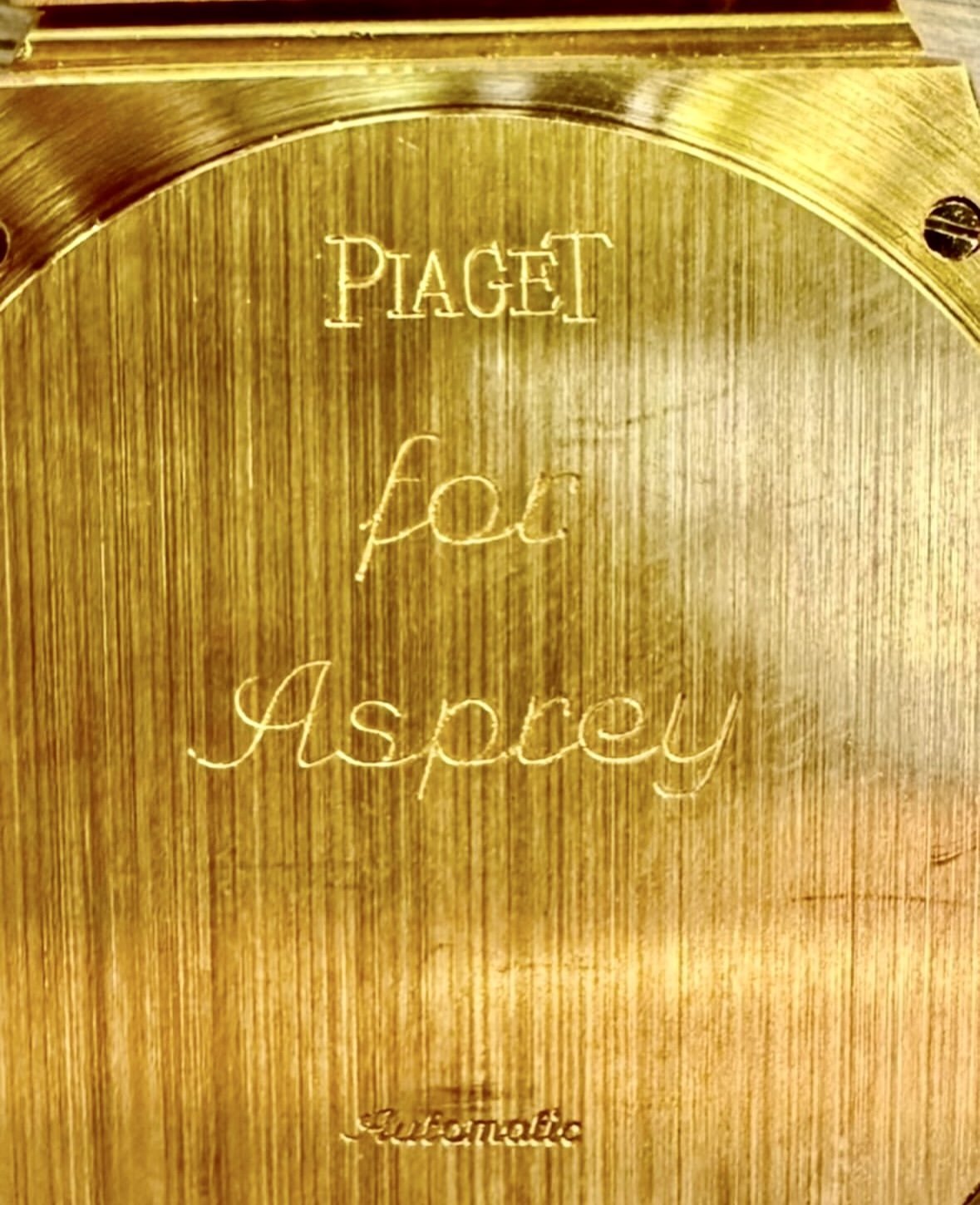 Created by Piaget on behalf of Aspreys for the Sultan Of Oman to celebrate the 15th year of his reign. When one studies pieces like this in the metal, you can see why Piaget were more expensive than even the equivalent Patek's of the era. The execution of the Royal coloured enamel dial, the plaque at 12, the uneven number of 15 diamonds on the bracelet shows the detail, thought & more importantly execution of said timepiece which just happens to be in unpolished like new condition save for 1 or two small marks here and there. Love the fact that its the mechanical variant and not the much more common quartz version too. The box, made of the finest leather, suede & silk is manufactured by Aspreys themselves, being a masterpiece worthy of display in its own right. At just over half the price of the recent limited re-edition of the model, this factory bespoke Royal example is not only an absolute bargain but a great investment for the future.