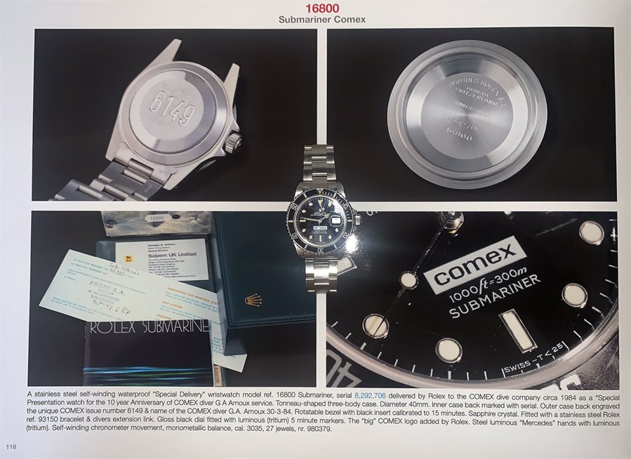 Given to the original diver Georges Arnoux as a special presentation watch for his 10th anniversary of working for Comex in 1987 and is the actual watch featured in the famous book 'A Journey Into The Deep' by John Goldberger.