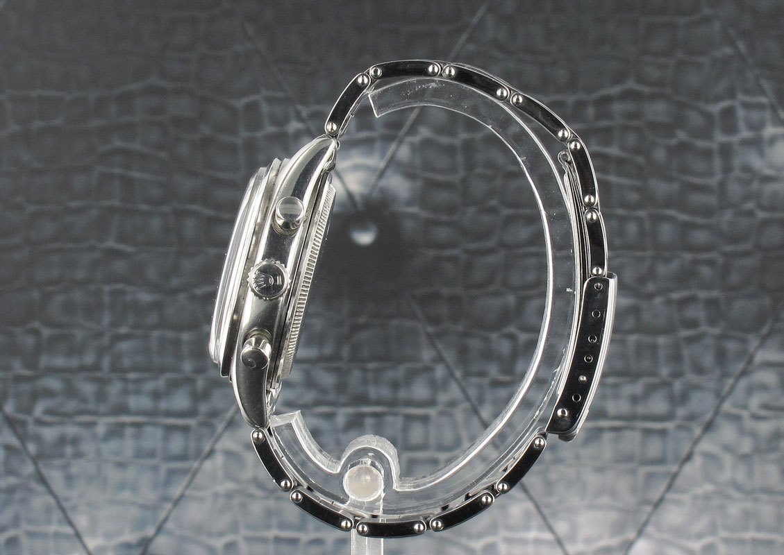 Far cooler, chicer and more classical than the Paul-Newman, the Dat-O-Compax has to be the greatest chronograph Rolex produced aside from the now £1000,000 ref 4113's. This example, apart from being the most revered reference out of the earlier 4767 and slightly later 6236, has the added bonus of running the rarest dial consisting of embossed steel rather than the more common gold indexes.