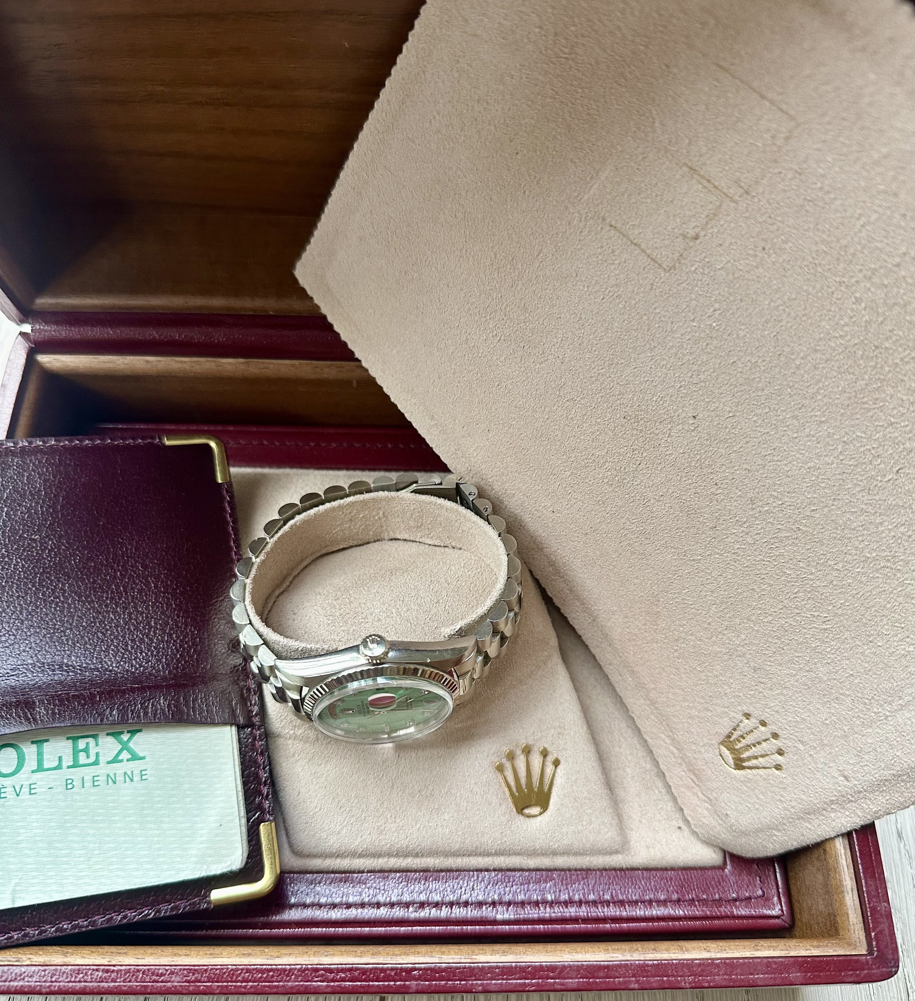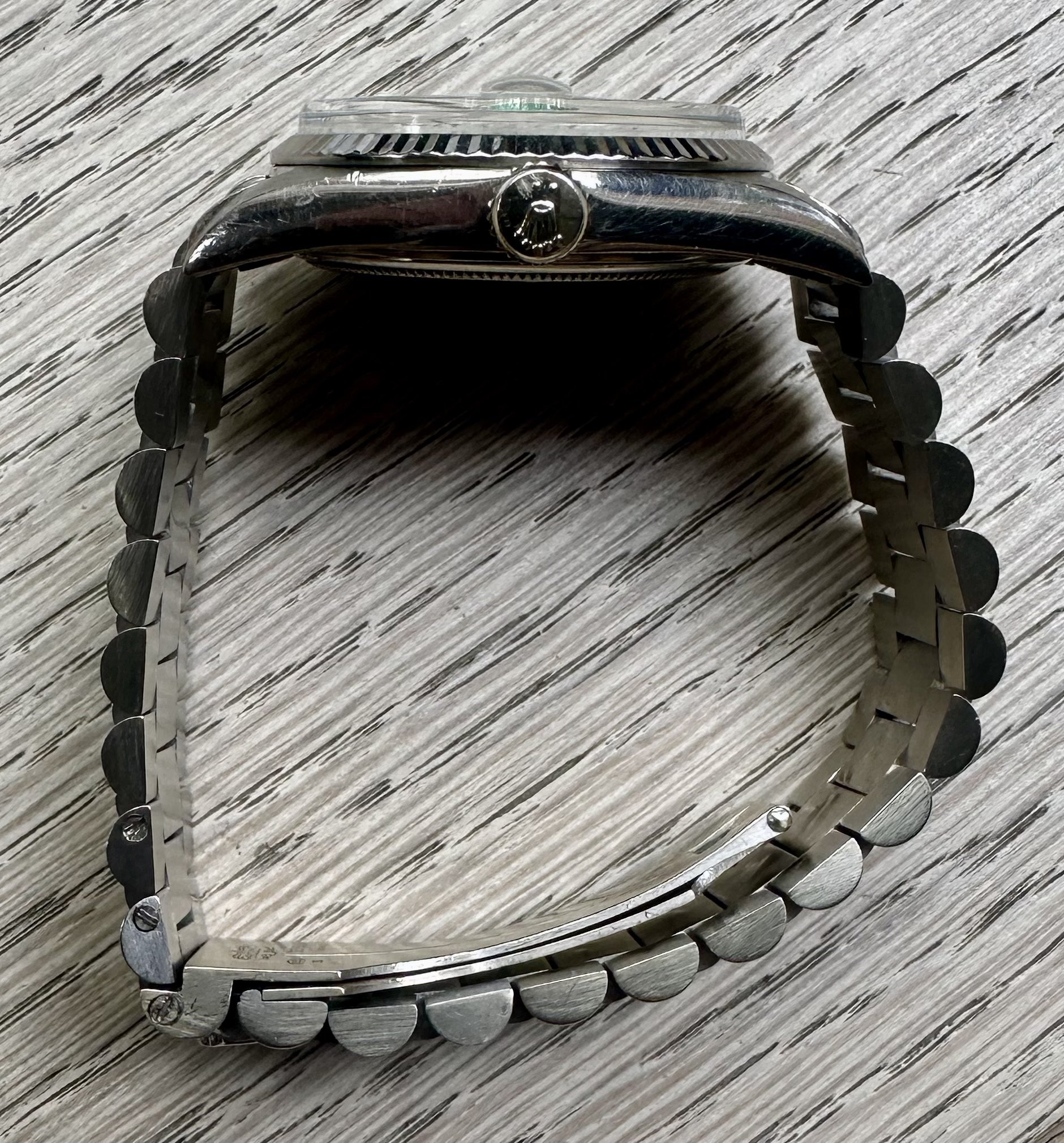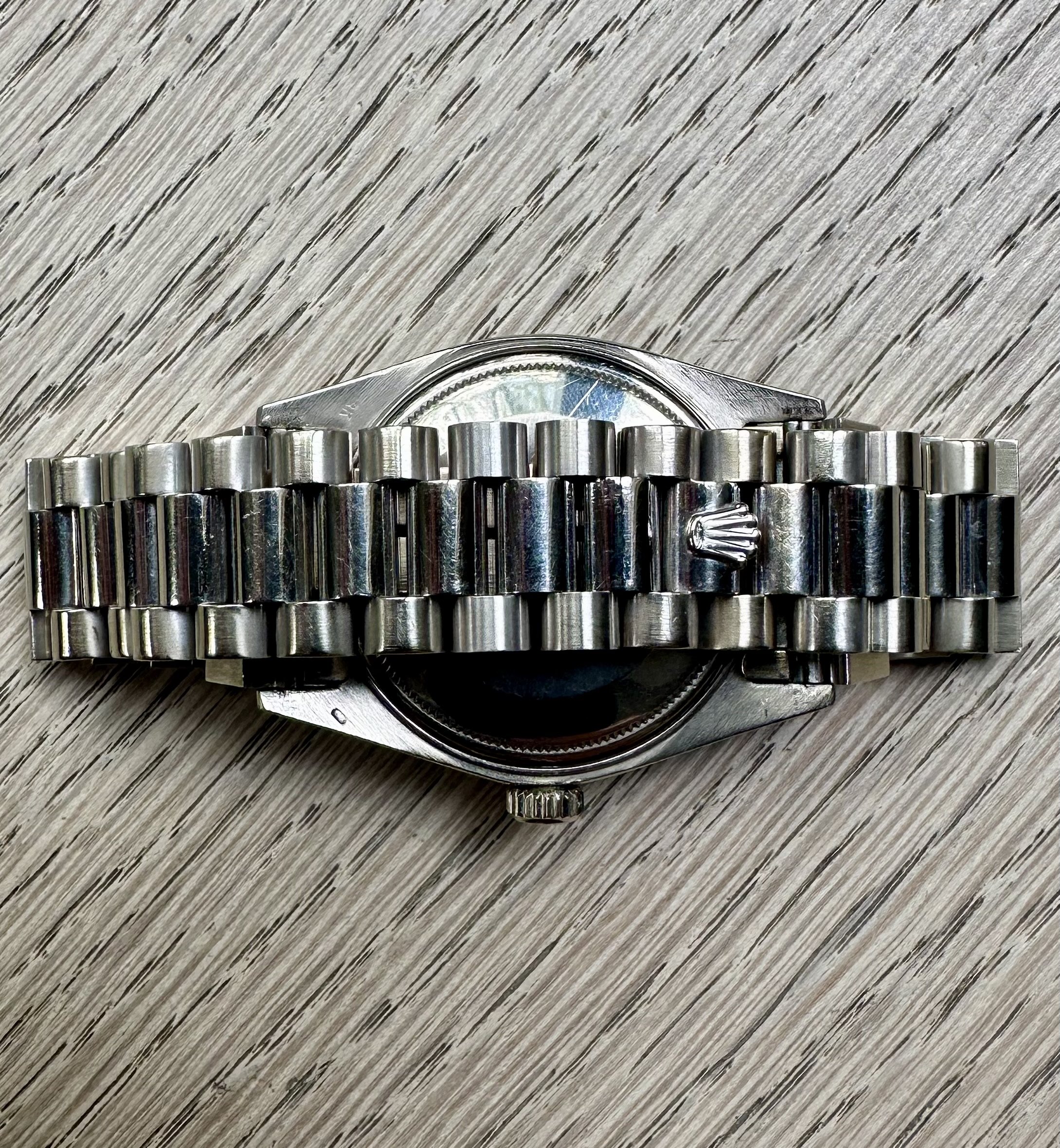 In stunning condition, this ultra rare Stella dial Day-Date known as the 'Seafoam' is one of the rarest Stella dials known to exist.