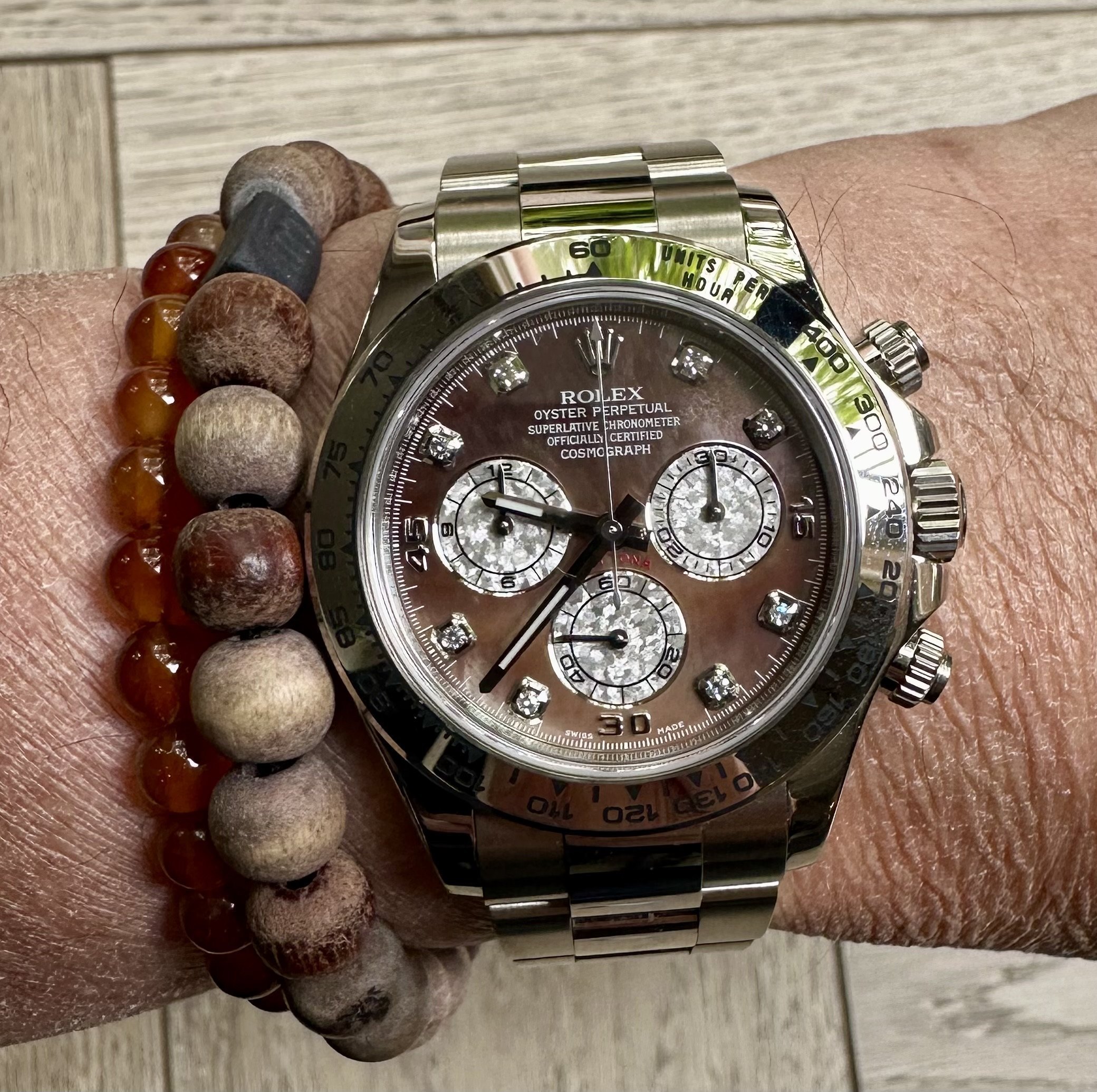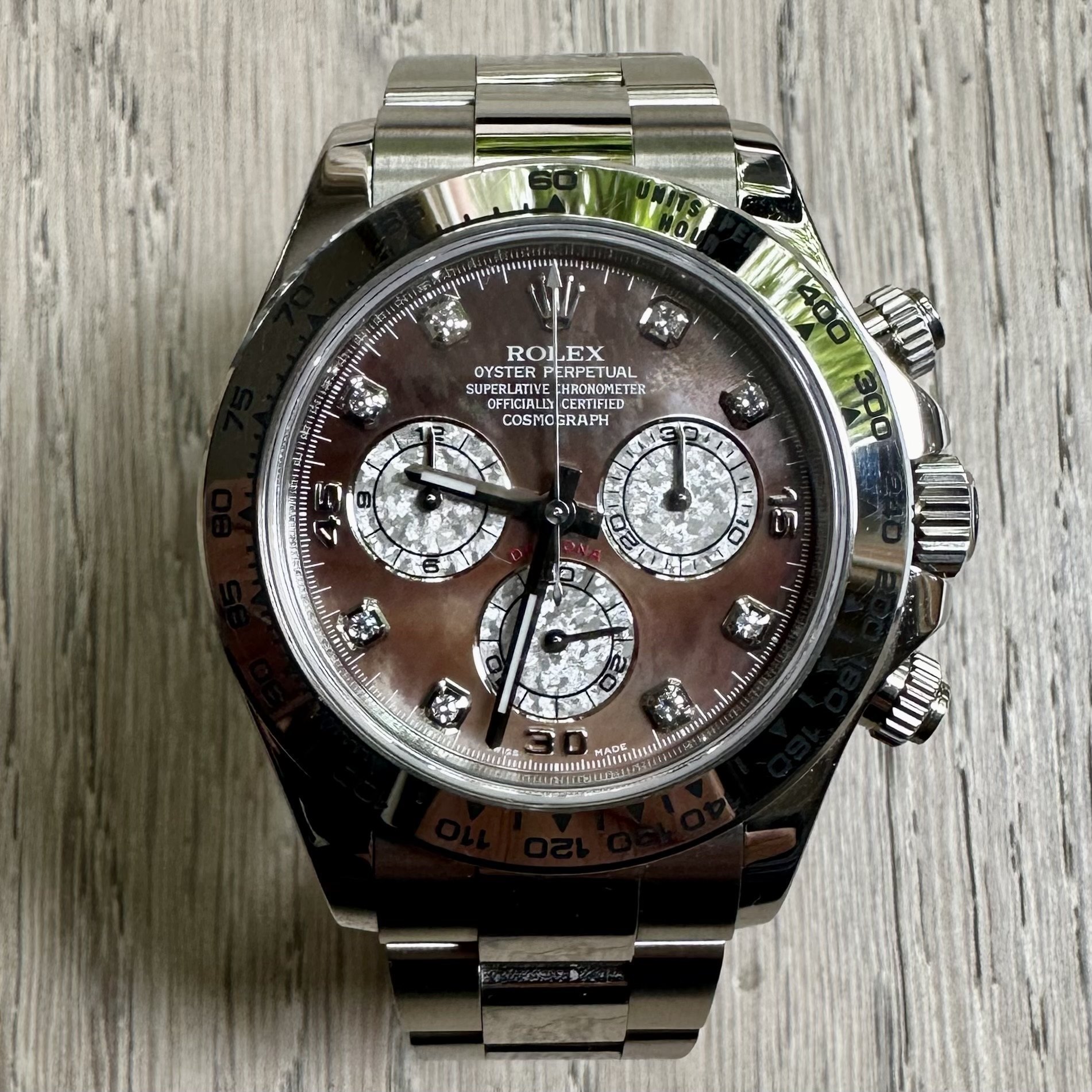 Ultra rare Tahitian mother-of-pearl Diamond dial option in as new unpolished condition.