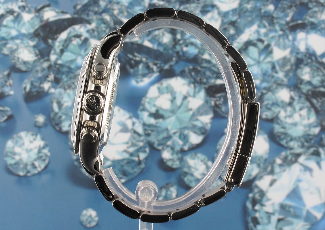 Possibly the only example of a reference 116509 with a factory diamond baguette bezel and Sodalite diamond dial with associated stamps on both the case back and bezel. The bezel alone today would set you back an additional £40,000 on top of the watch itself and that's even before you order the £7000 dial!