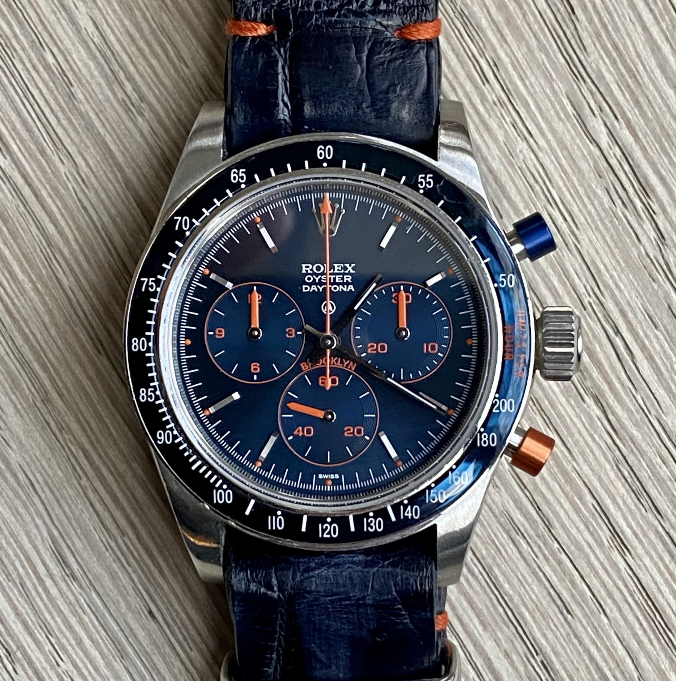 Based on the Rolex 116520 Daytona, the Spike Lee is a hommage to Brokyln New York created in partnership with the famous film maker & black activist. It has numerous unique features including a sapphire case back with anodised 18k rotor, no crown guard & pump pushers. Ltd to a maximum of 40 pieces the Spike Lee is the funky 70s Daytona that Rolex never made!