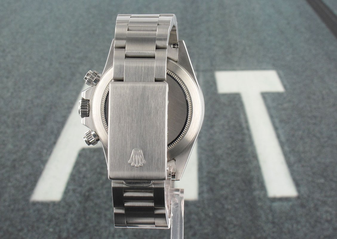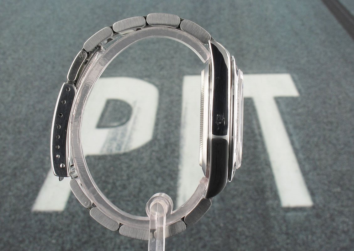 Very first incarnation of an automatic chronograph by Rolex, produced for only a few months incorporating a 200 rather than a 400 tachymeter bezel and the now infamous ''gap'' between the forth and fifth lines of printing on the dial. These 1st models had matt rather than polished bracelets also. Incredibly this watch will be a quarter of a century old next year and is probably the only NOS original piece in existence. A real piece of horological history.