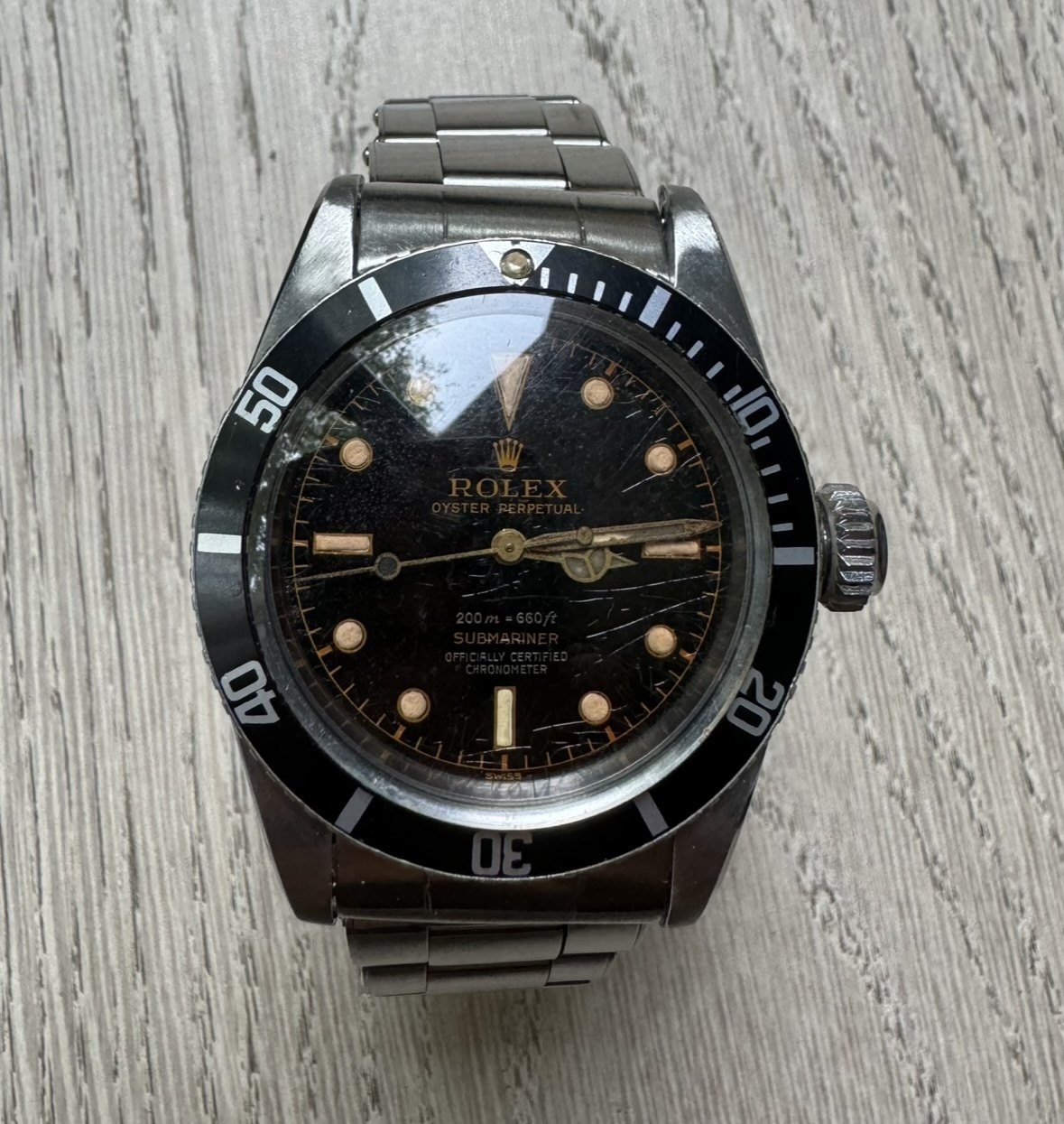 A beautiful example of the hard to find Rolex 6538, worn by ‘James Bond’ in ‘Doctor No’. A wonderful catalogue piece pertaining to Rolex’s earlier history, it still runs its original vintage glass showing the internal crazing, which the new owner can of course change. This of course is the GTO variant that sports 4 lines of printing on the dial rather than 2 pertaining to its chronometer rated movement.