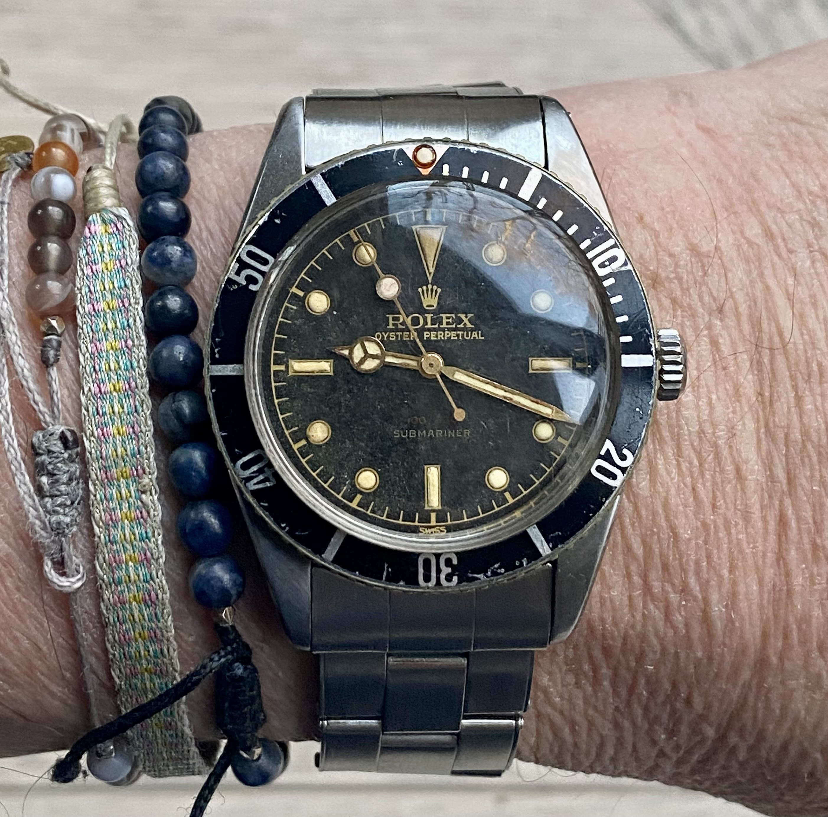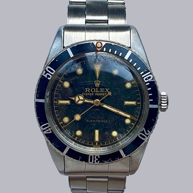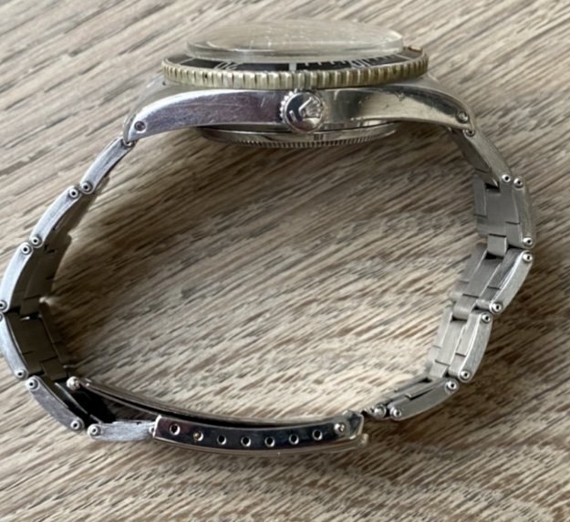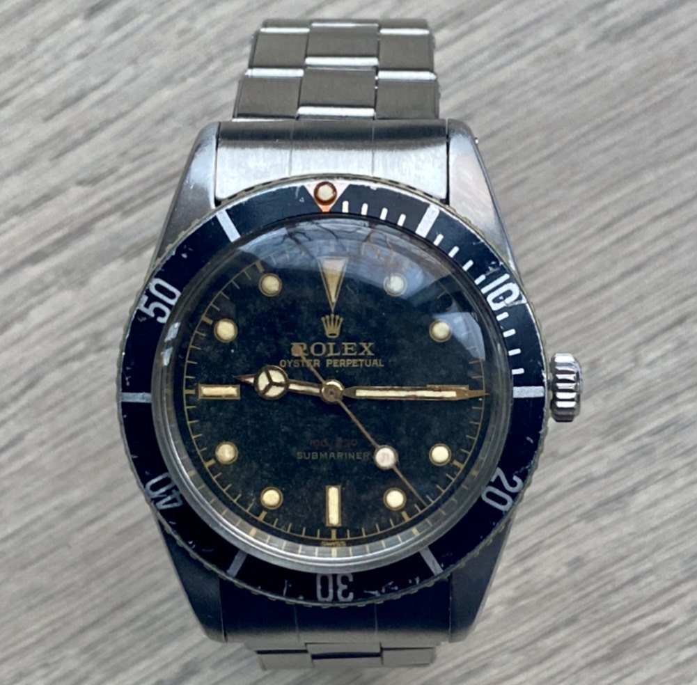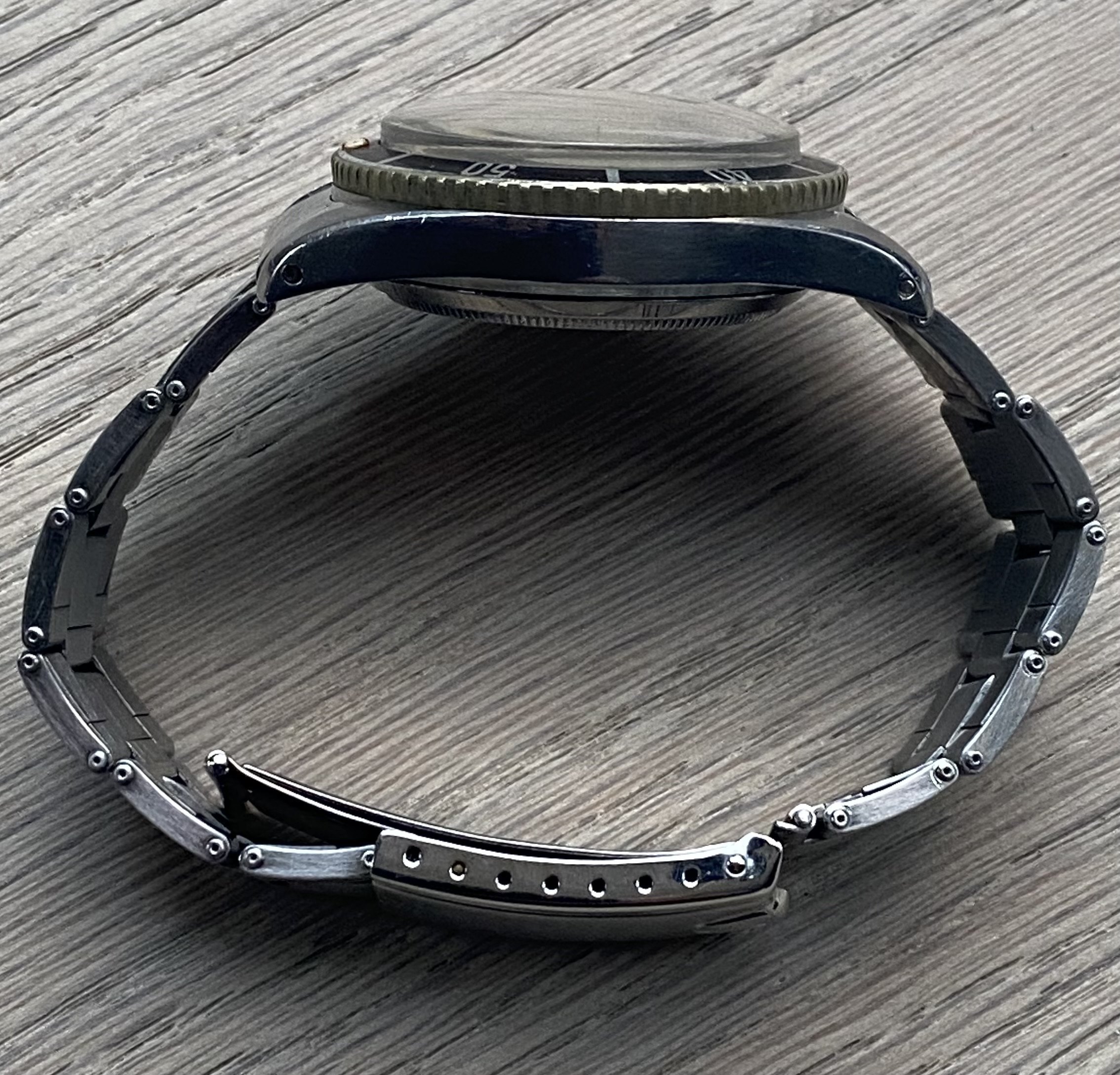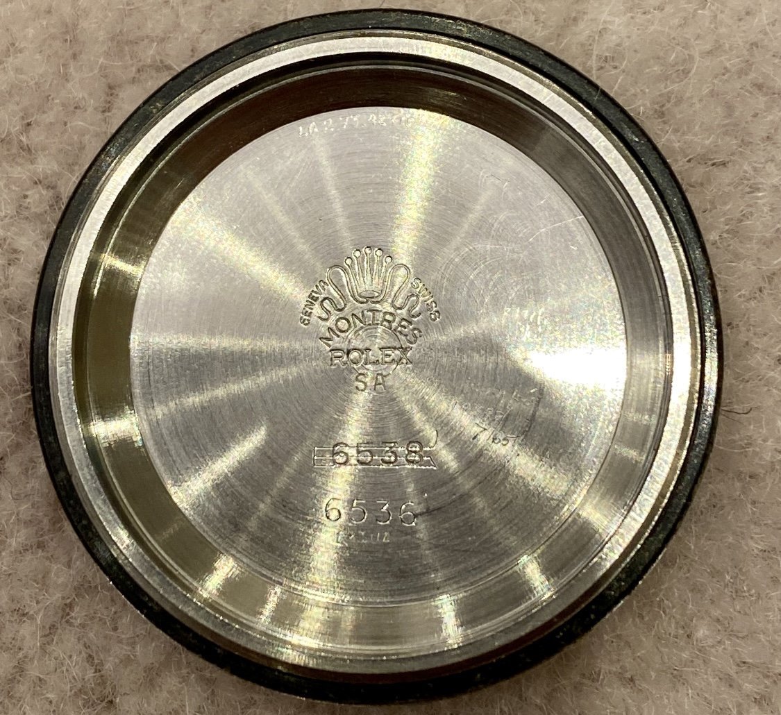 One of the rarest James Bond Submariners ever, the 6536/8 was, as the reference suggests, a cross between both the big & small crown Subs. What's strange is that it's not just a chunky 6538 case back on a standard 6536 body as the actual body of this hybred is thicker than the standard variety. This 6536/8 also boasts the added extra of red writing.