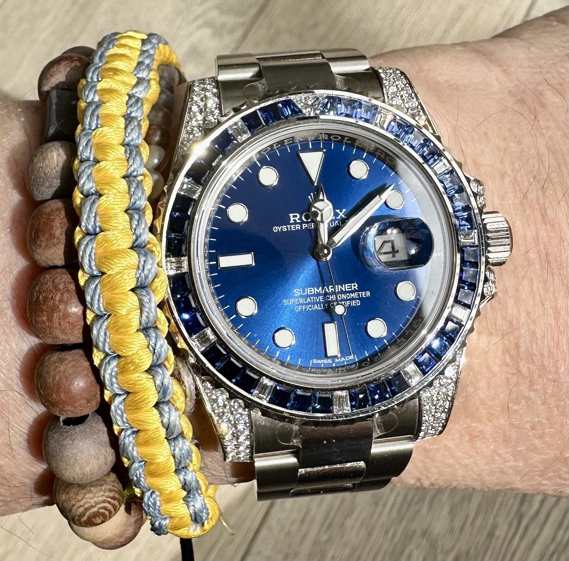 Versions with the plane blue dial as opposed to the pave dial pro-rata, hold much better value due to being more of a wearable piece, though granted, still not for the shy and retiring!