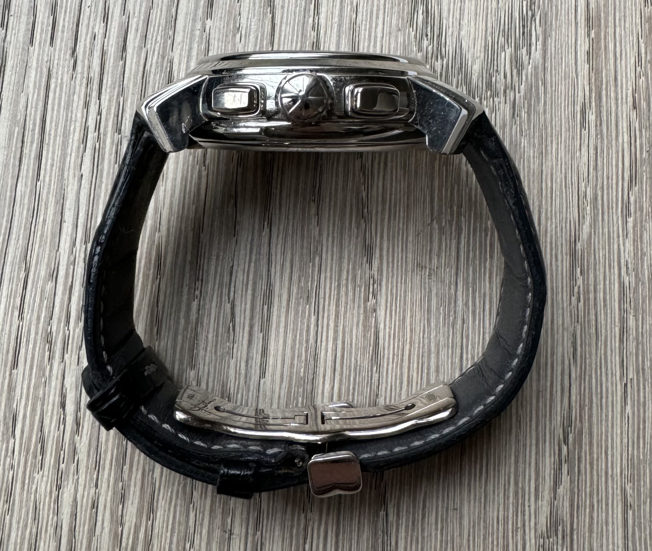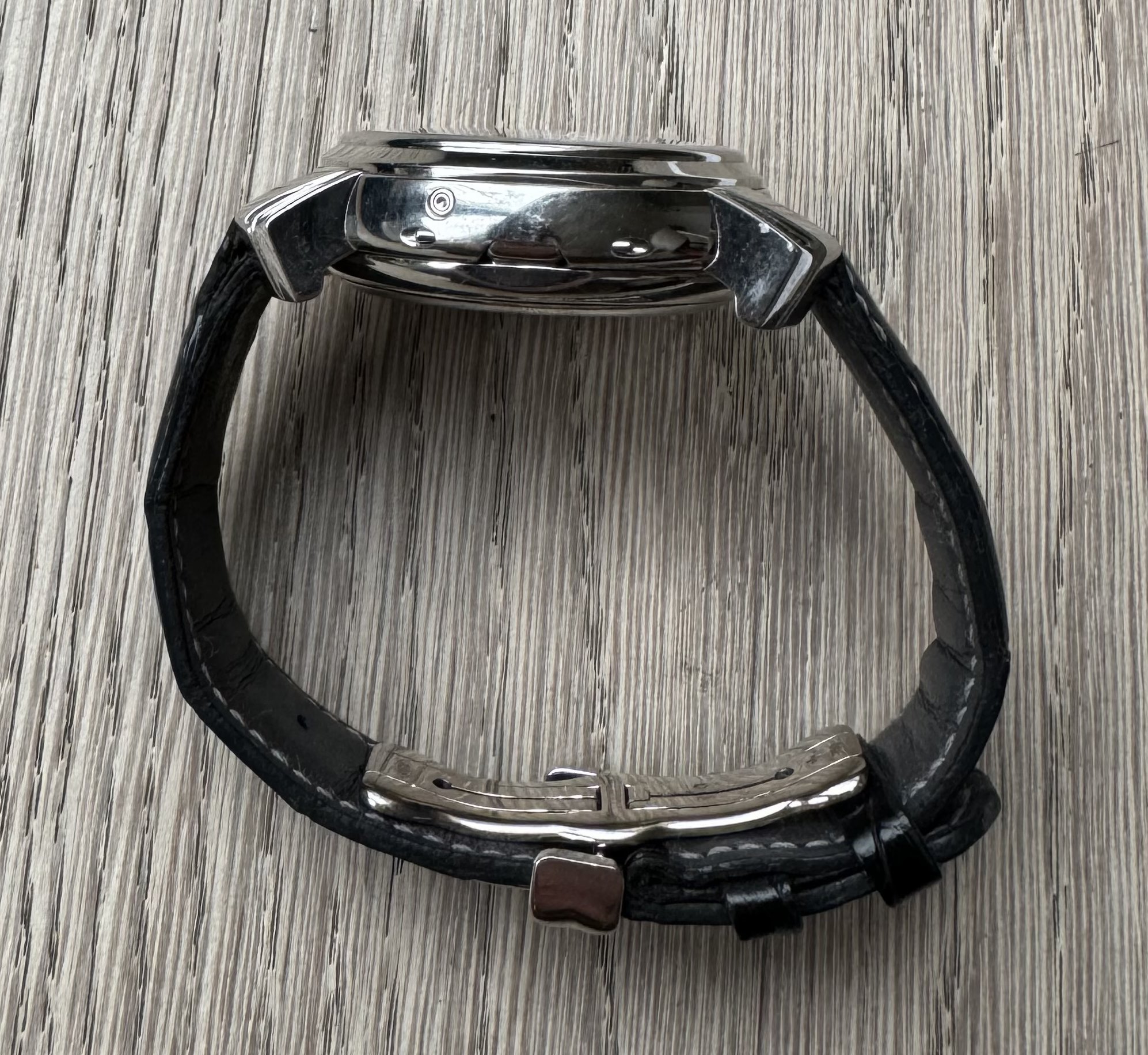 When in production, even the standard examples of this piece unique retailed for 50% more than the Patek equivalents, ref 3970. The finishing of the ref 47112 pays testament to the RRP price differential but not to current pre owned prices luckily for the discerning collector of today! So for those looking for genuine quality & style that aren't caught up in the machine like hype of Patek, this could well be the ultimate perpetual chronograph. 'Piece Unique' refers to this being the only black dial version ever produced hence the designation of 1/1 on the hinged case back & the corroborating original paperwork.