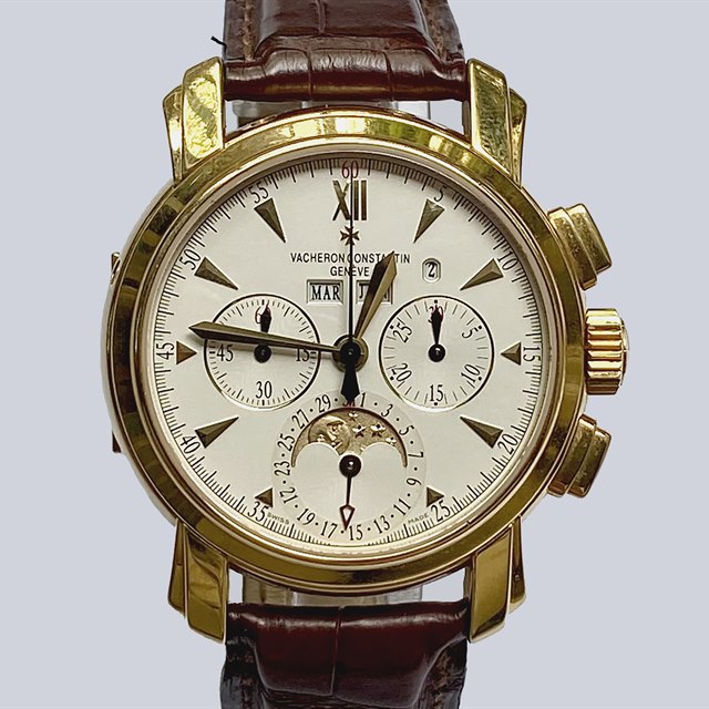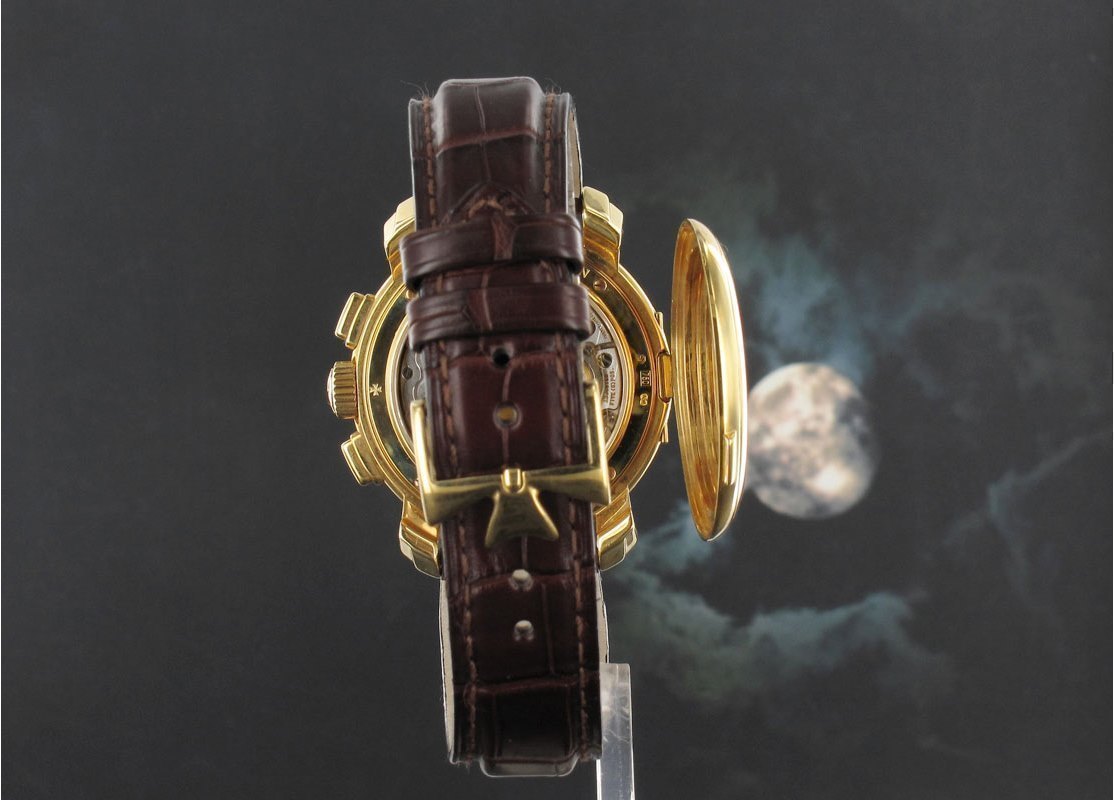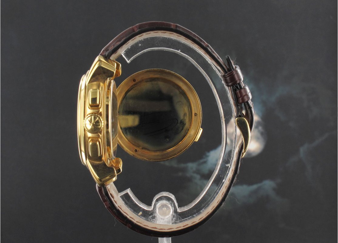 Only a fraction of examples of this Malte perpetual chronograph were produced in yellow gold hence unlike its platinum counterpart, many collectors actually prefer it. Built in a very wearable 39mm case with hinged back revealing a sapphire display as well as stunning engraved moon phase disc this old school Malte now no longer available, is highly regarded as one of the best offerings from Vacheron in decades.